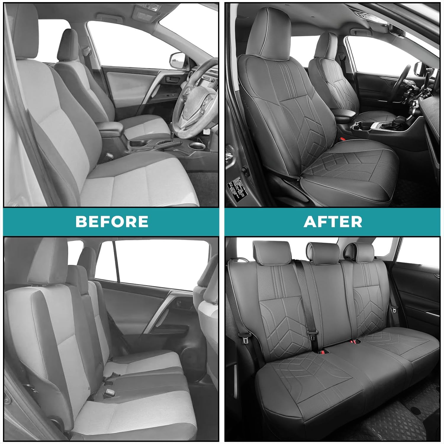 for Toyota RAV4 Seat Covers 2013 2014 2015 2016 2017 2018 RAV 4 XLE SE Limited Platinum Adventure (not for LE&Hybrid) - Custom Leather Car Seat Covers Full Set - BlackGrey