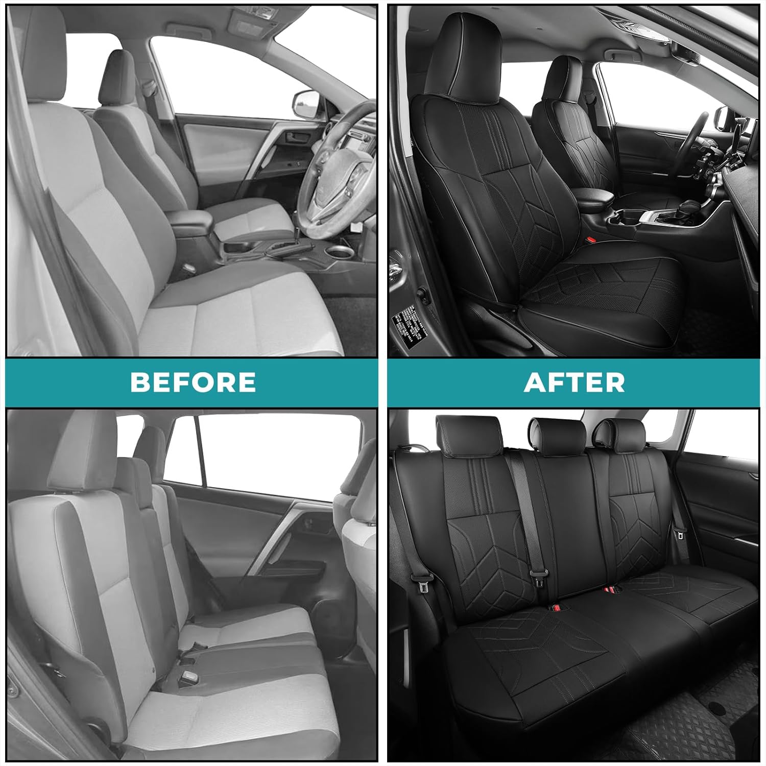 for Toyota RAV4 Seat Covers 2013 2014 2015 2016 2017 2018 RAV 4 XLE SE Limited Platinum Adventure (not for LE&Hybrid) - Custom Leather Car Seat Covers Full Set - Black