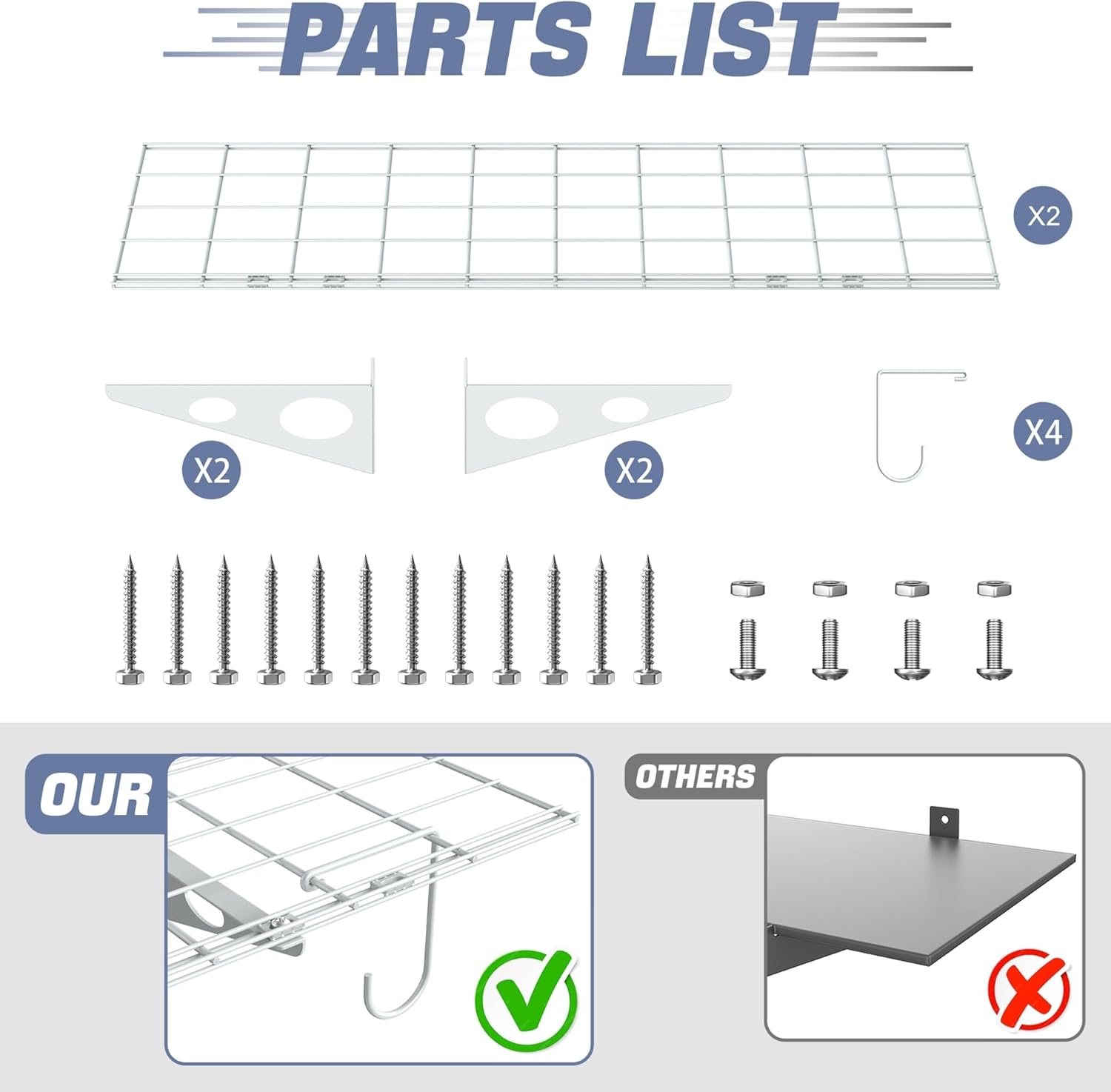 - Well Constructed: Built from high-quality steel with a durable powder-coated finish, this garage wall shelf is designed for long-lasting use. Each shelf holds up to 220 lbs, making it perfect for storing tools, equipment, and more