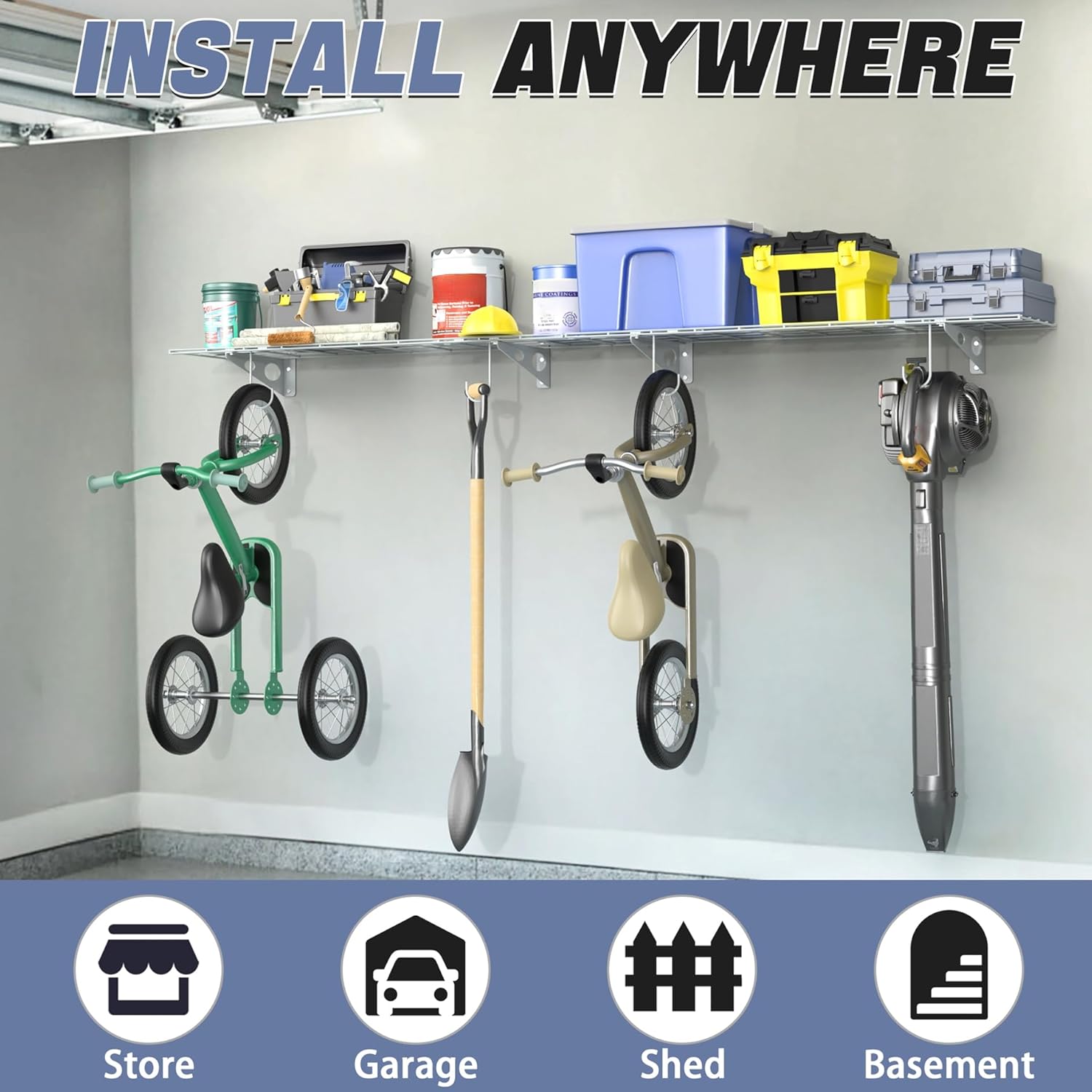 - Save Your Floor Space: Maximize your storage area by keeping your garage, closet, or laundry room organized with this wall-mounted shelf. Clear up floor space and make your space cleaner and more efficient