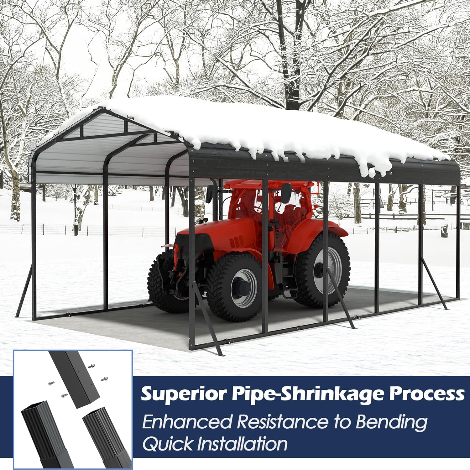 - 【Superior Pipe-Shrinkage Process】Each joint of the metal carport frame undergoes a pipe-shrinkage process. The original steel tubes are pressed under high pressure to form small-size wave tubes, enhancing resistance to bending. This process significantly strengthens the weakest joints of the frame, ensuring greater stability