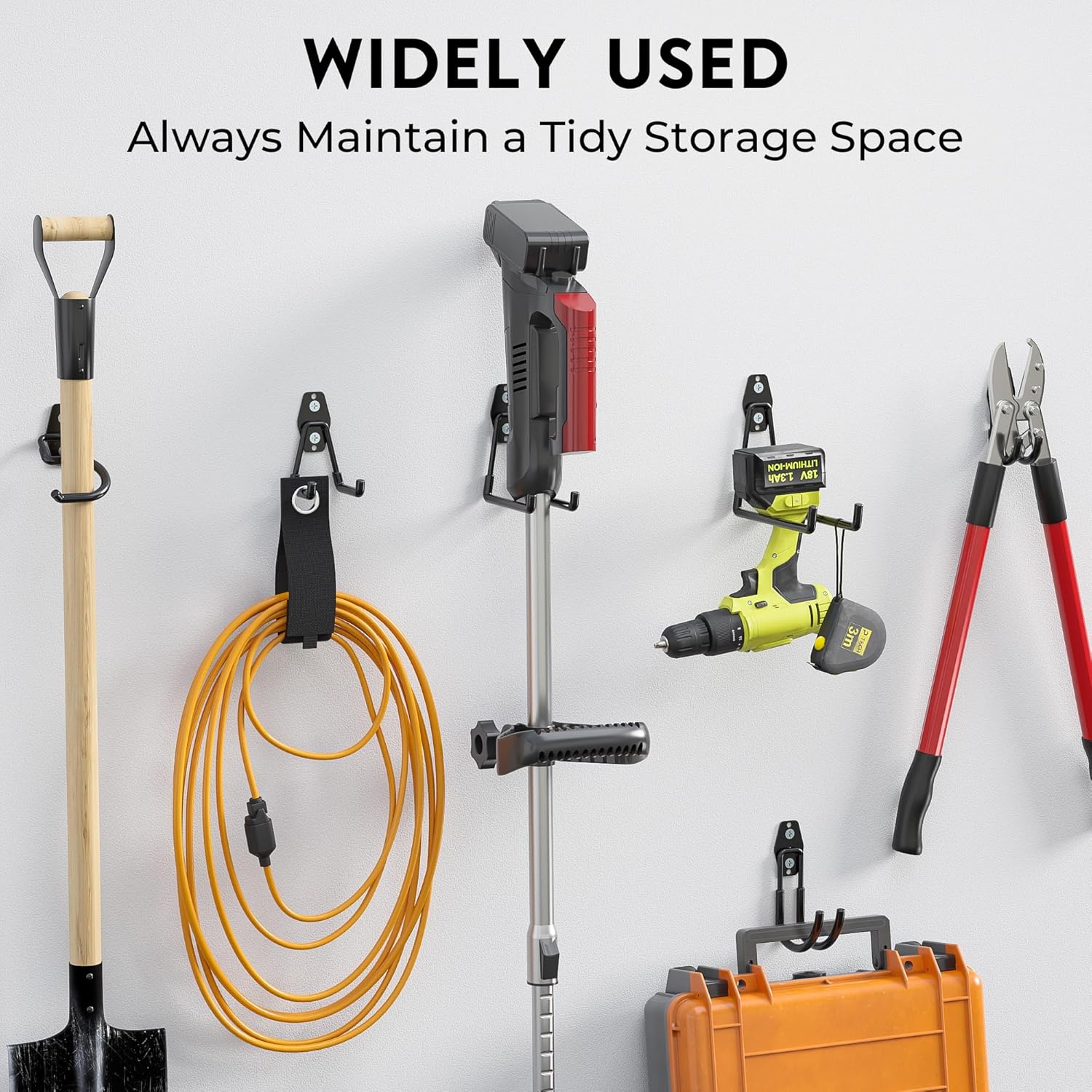 - ✅ OPTIMIZED STORAGE SOLUTION FOR YOUR GARAGE – Maximize your garage space with these heavy-duty hooks, designed to keep your tools and equipment organized and easily accessible. The adjustable cable ties keep cords neatly stored and prevent clutter, allowing for a more efficient and tidy garage setup