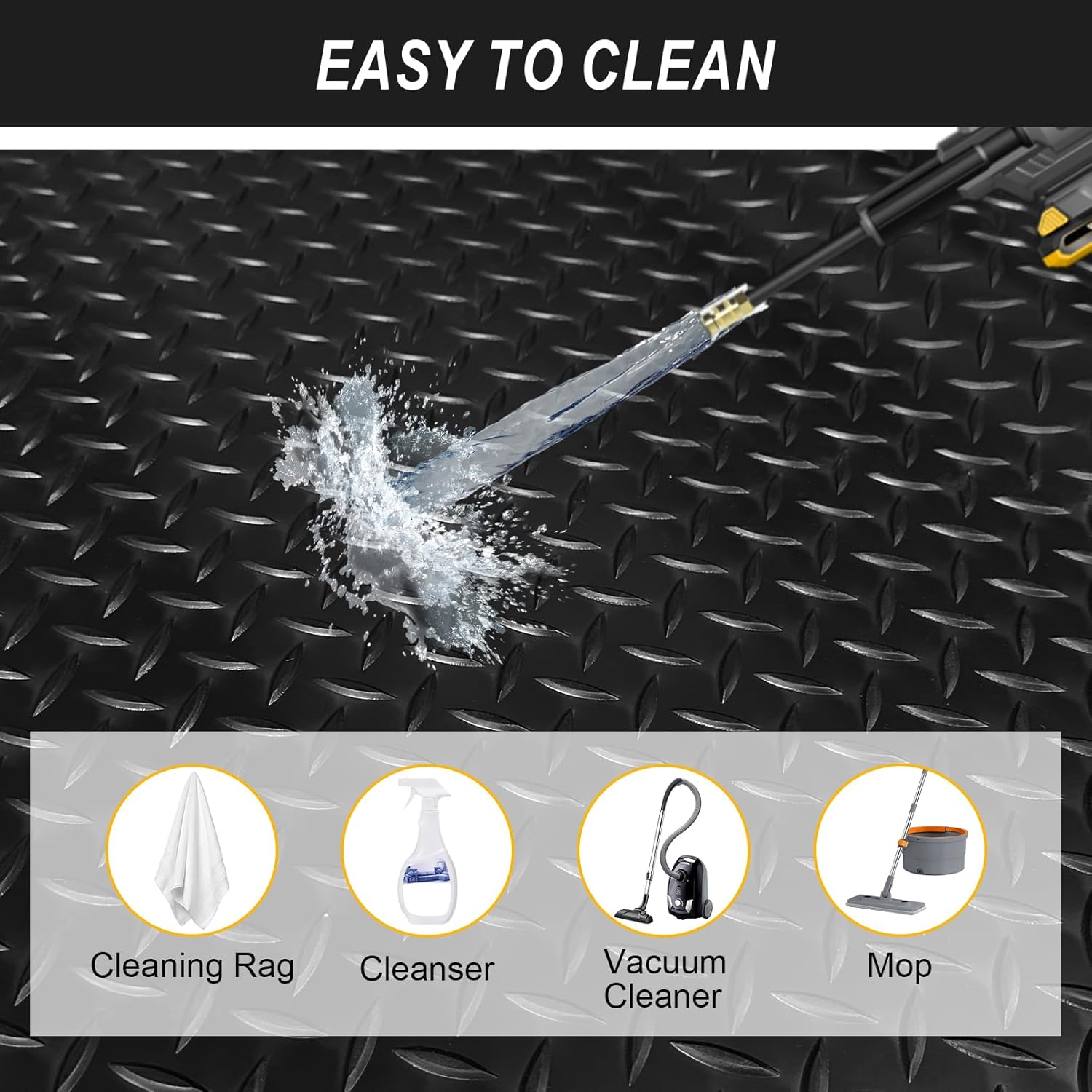- Waterproof & Effortless Cleaning: Stain-resistant PVC repels oil, grease, and mud. Simply wipe with a cloth, hose down, or vacuum for a like-new finishโno harsh chemicals needed.
