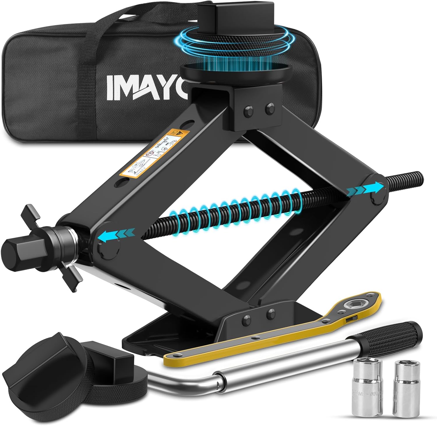 - 【Durable and Reliable】This car jack kit is made of high-strength cold-rolled steel with an enlarged base that ensures its stability during lifting; the jack comes with two non-slip Jack rubber pads that match it, which protects the car from steel beam scratches while lifting.