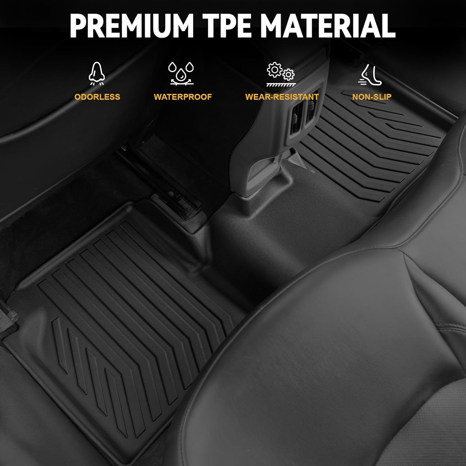 - All-weather TPE Material: 100% odorless, BPA-free: family-safe by design. Flexible TPE full-coverage car mats deliver water resistance, marine-grade durability, and daily wear protection—all in one set