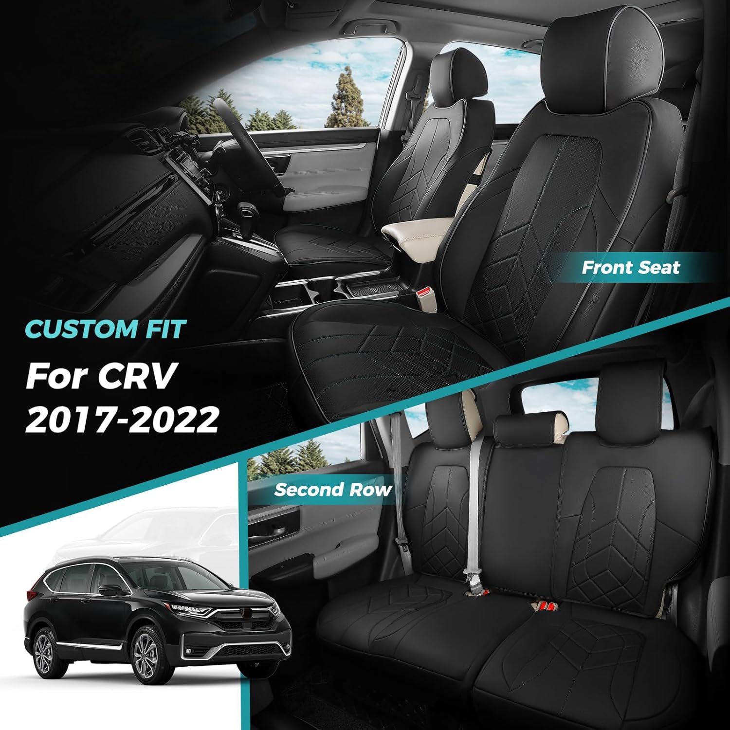 for Honda CRV Seat Covers Custom Fit 2017-2022 EXL EX LX Sport,Touring,Hybrid - Luxury Waterproof Leather Car Seat Covers Full Set - Black