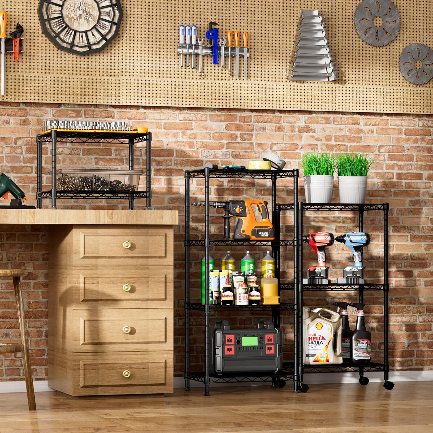 - Convenient Home Storage: Metal wire shelves with adjustable spacing make perfect for narrow spaces or room corners such as kitchens, bathrooms, laundry rooms, balconies, garages, entries, or offices.