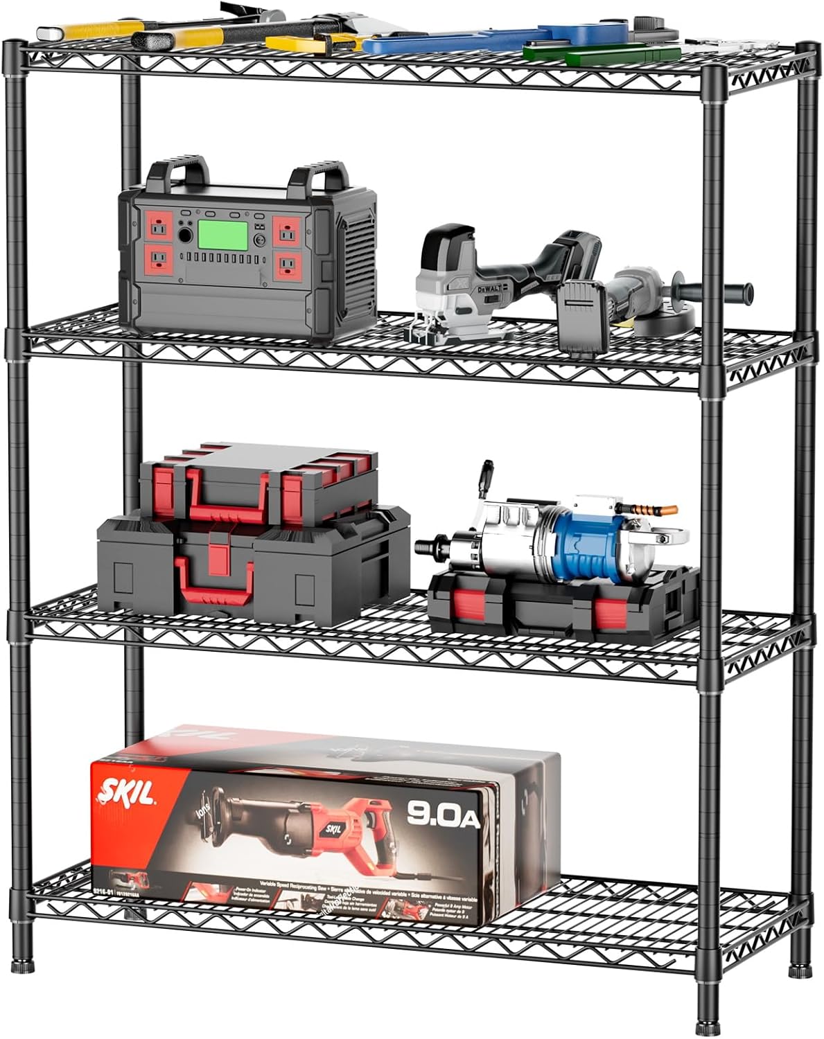 SINGAYE 4 Garage Heavy Duty Shelving Unit Kitchen Pantry Close Home Organizers and Storage Bathroom Shelf Laundry Room Organization Industrial Book Metal Wire Adjustable Shelves