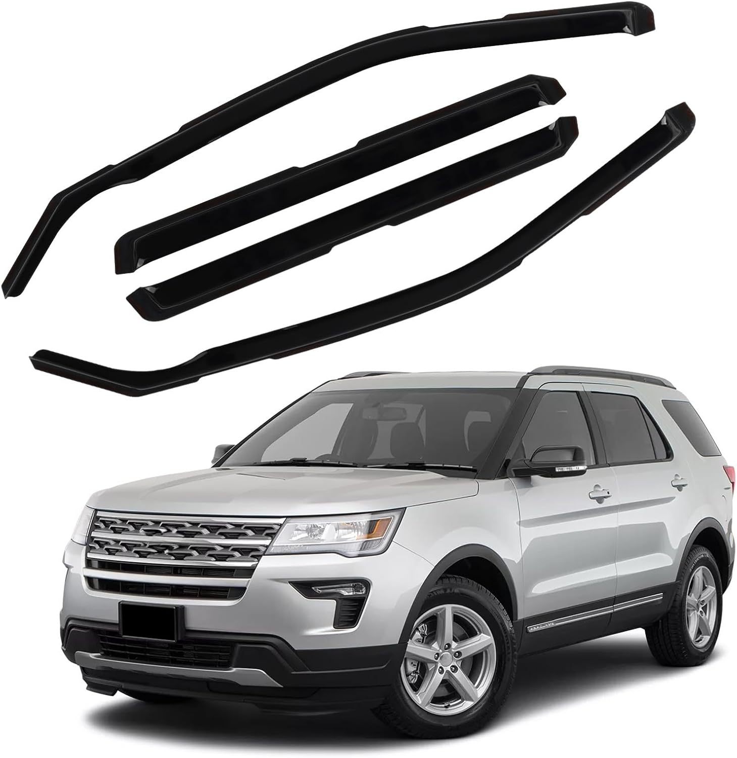 in Channel Rain Guards Fit for Ford Explorer 2011 2012 2013 2014 2015 2016 2017 2018 2019, Durable Vent Window Visors, Smoke Tinted Wind Deflectors, Vent Shade Shield, 4 PCS