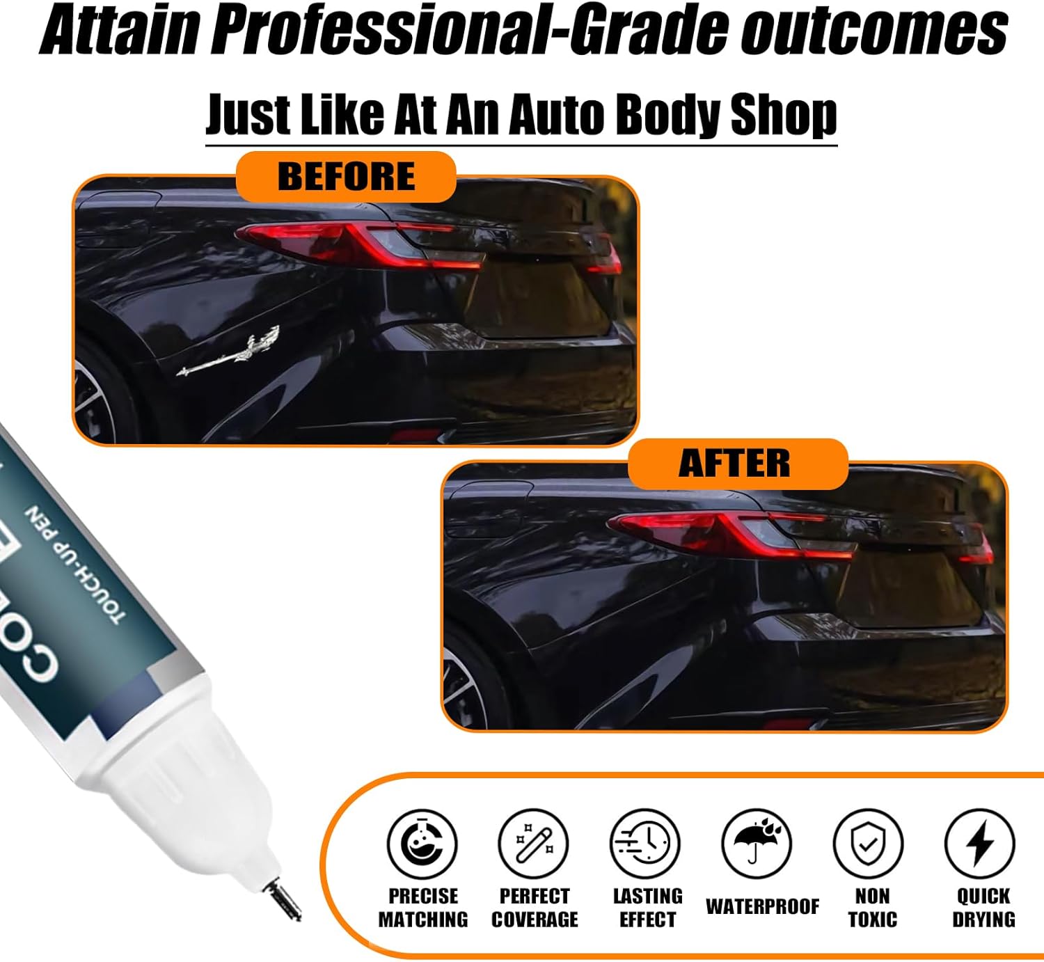 - 【Repair scratches quickly and simply】This car scratch repair paint has strong adhesion, anti-rust, and waterproof properties that protect your car's surface from further damage. With a 2-in-1 uses design, each bottle of car paint comes with a pen pin and brush, ensuring a hassle-free application