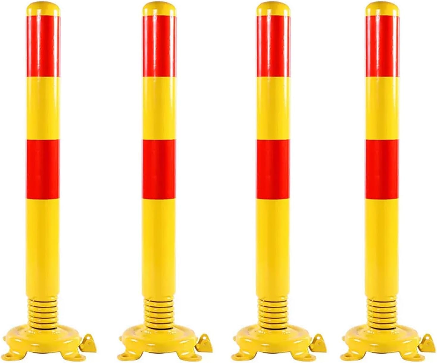 Safety Bollard Post, Spring Parking Post with Warning Stripes, Driveway Garage Security Post Barrier, Traffic Barricade Cones, for Indoor and Outdoor Parking(Yellow (4PCS))