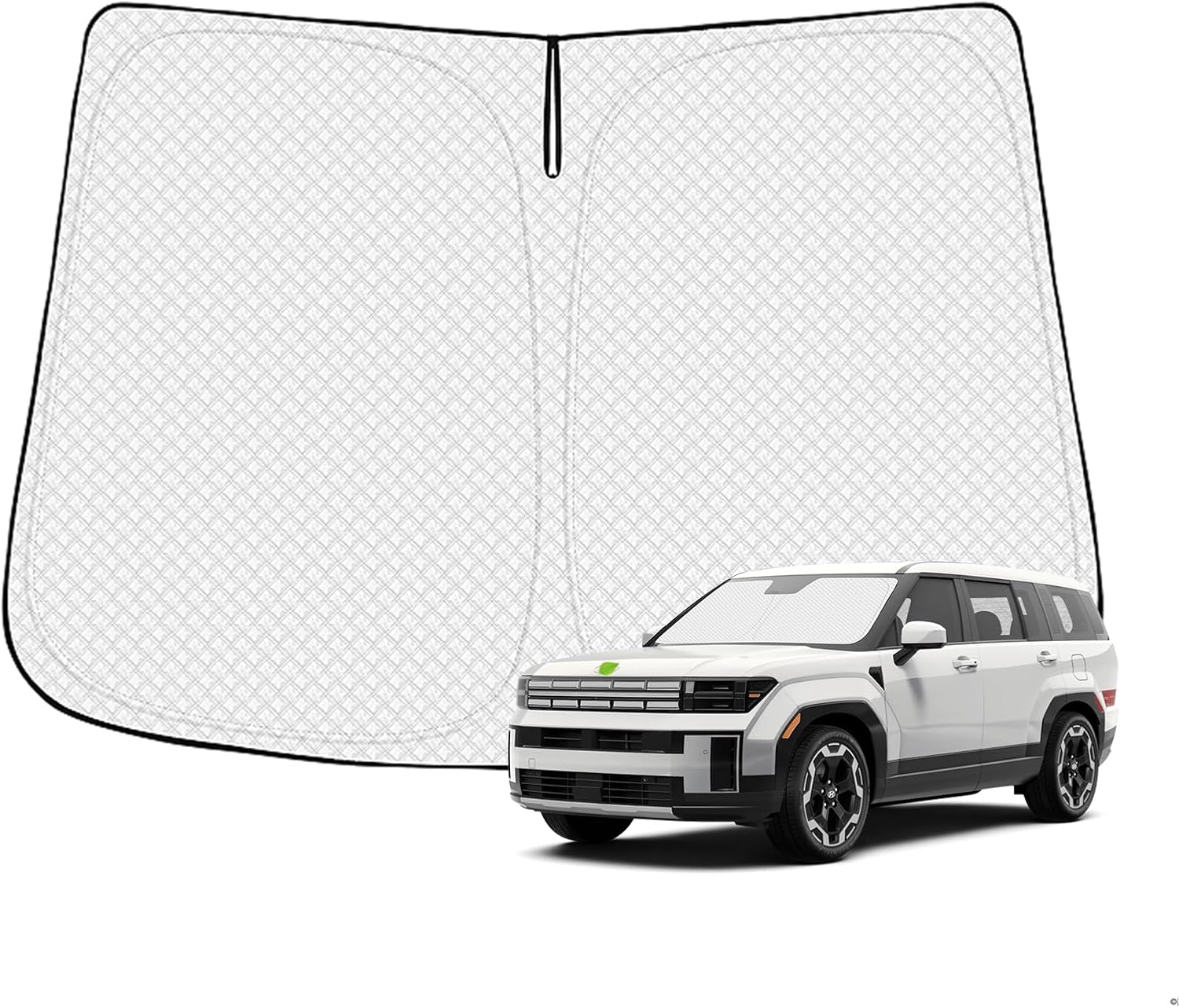 - 【Perfect Fit】Canvcle windshield sun shield fits perfectly for Hyundai Santa Fe 2024 2025 2026 front windshield without any gaps, don't worry about the size. Works well in keeping your car cooler, will be a must-have accessory for your car!