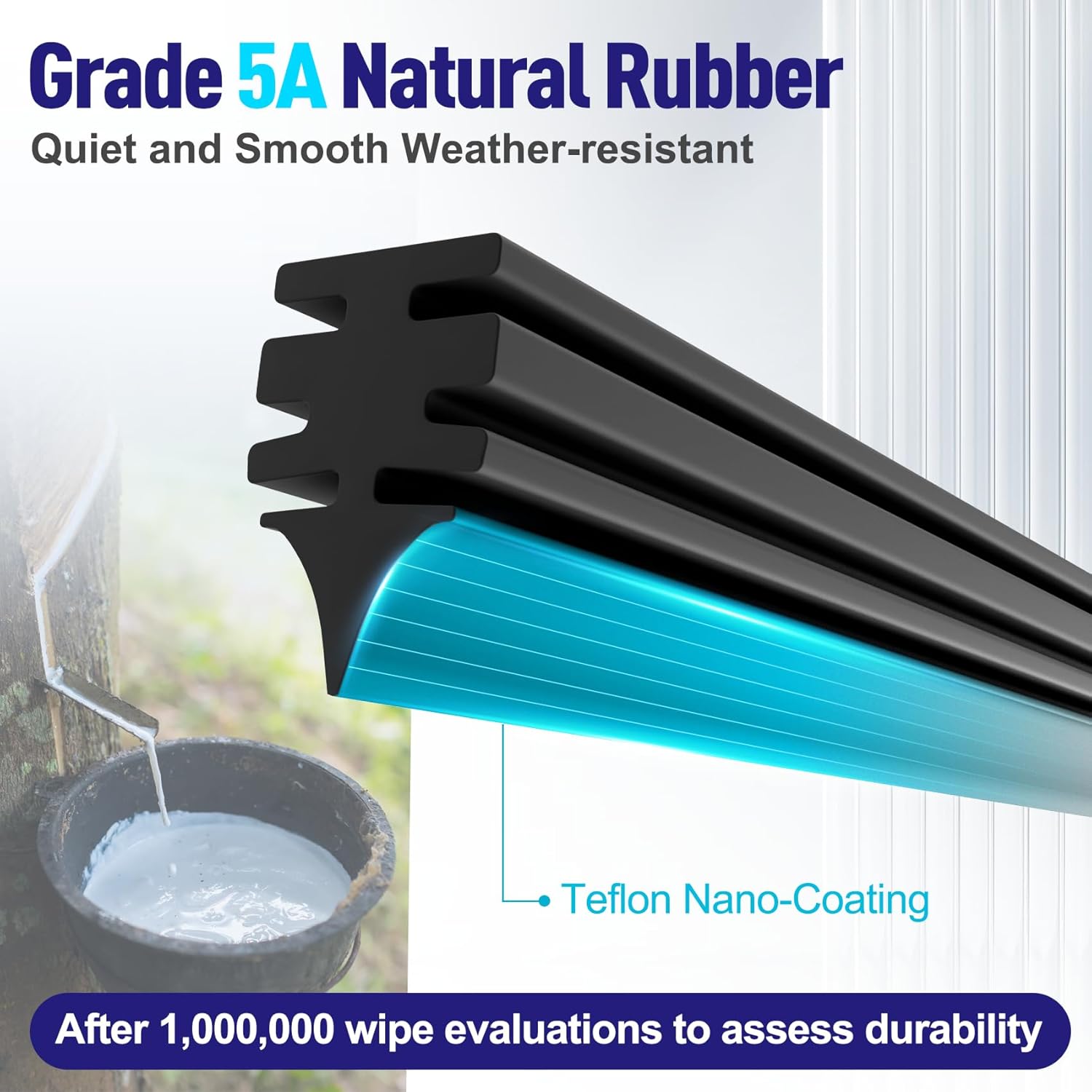 - All Natural Rubber Squeegee: Original wiper blade set resists cracking, splitting, and tearing caused by various hot and cold weather conditions, windshield wiper fluid, and road salt