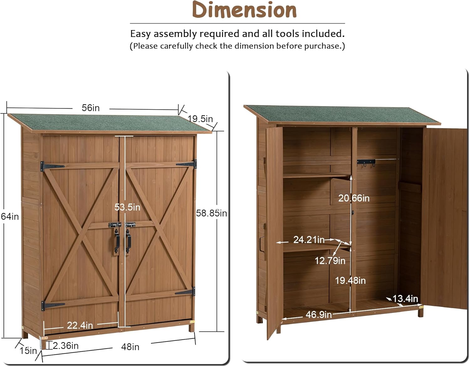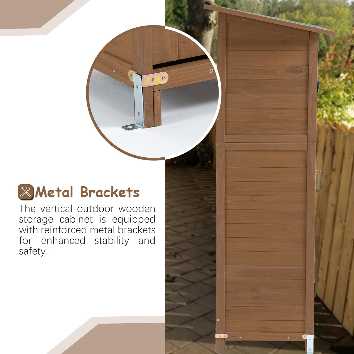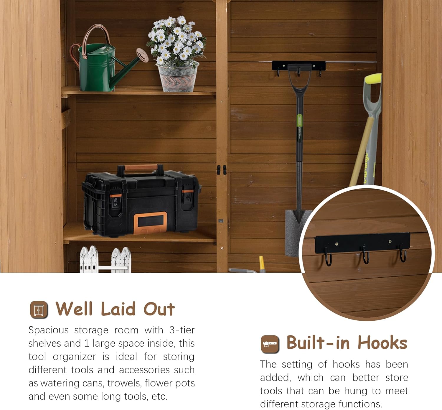 - MULTIFUNCTIONAL USE - Perfect for storing garden tools, pool supplies, and lawn maintenance equipment. This fir wood storage cabinet seamlessly blends into various outdoor settings.