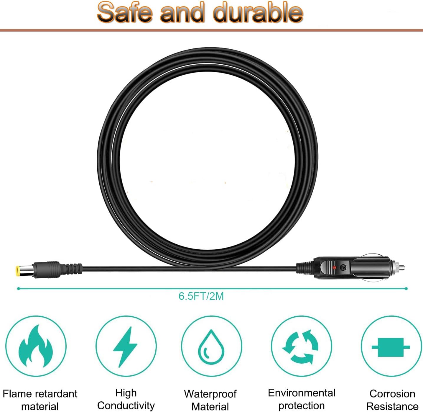 Car Charger Power Adapter Compatible with BLUETTI Car Charging Cable EB3A / EB70 / EB70S Portable Power Adapter 2M/6.5FT Charging Cord with DC 8MM Input Port