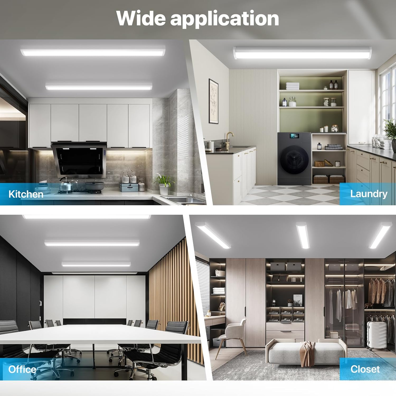 - Easy Installation:Designed with a sleek, low-profile build, hyperlite 4FT LED shop lights mounts easily flush against the ceiling. Featuring an innovative small cover design, it makes lifting and removing the lampshade easier during installation—helping prevent damage and saving you time. Simply align with the grooves and snap it into place! 4-foot lights with a tough PC lampshade ensure clear, even lighting, while the 4000K neutral white color creates a bright, comfortable workspace that helps you stay focused and reduces eye strain.