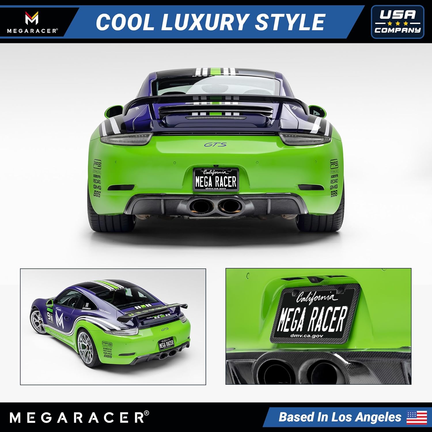 - CUSTOMER SERVICE: Mega Racer's 2 pc Carbon Fiber Design License Plate Frame will leave both you and your ride satisfied. If you have any questions please send us a message via Amazon Message and we will be sure to respond within 24 hours.