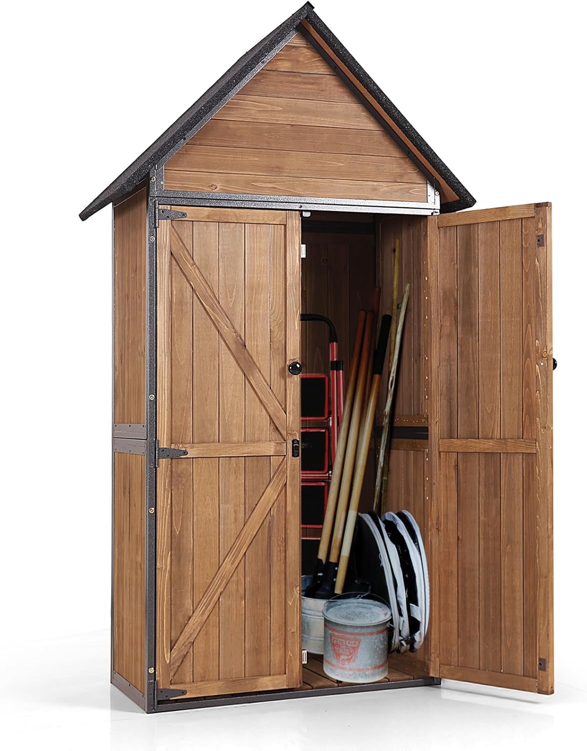 - Adjustable Shelves: Garden shed with three layers of adjustable shelves accommodate tools of all sizes, offering flexibility in organization
