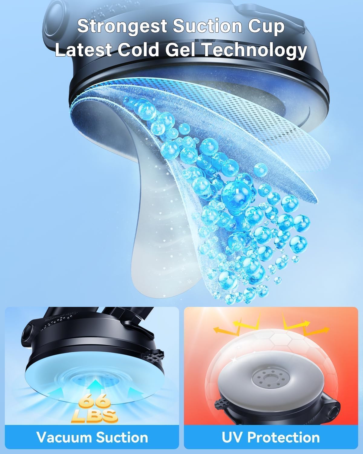 - 【2025 Upgraded Suction Cup: 60LBS Hold, All-Weather Reliable】3-layer cold glue + vacuum seal technology delivers 60lbs (27kg) grip—stays put on bumpy roads. Withstands -20℃ to 80℃ (-4°F to 176°F) extremes: no melting in summer heat or cracking in winter cold. Washable and reusable (50+ washes), lasting 2+ years (3x longer than standard mounts).