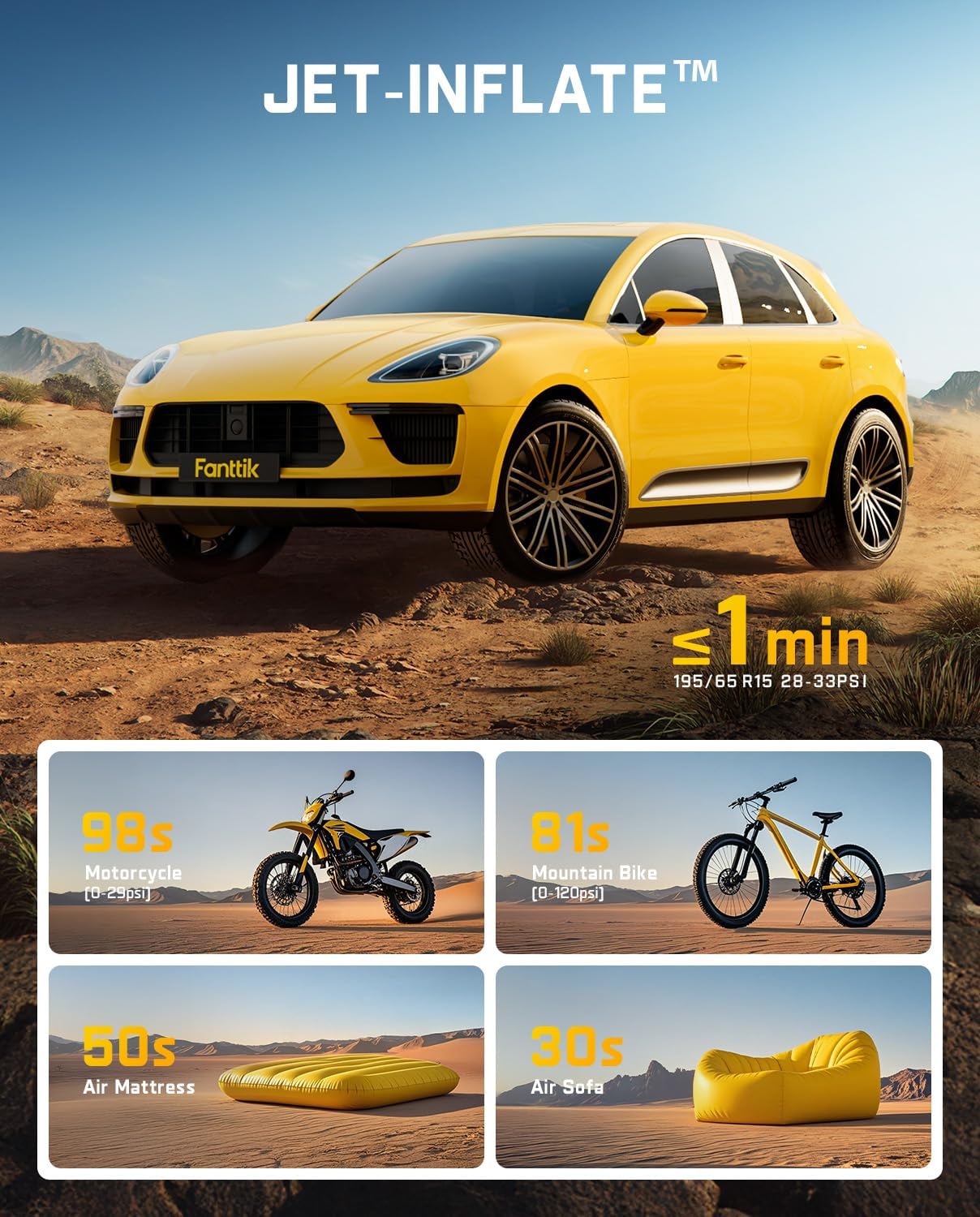 - Accuinflate Technology, Automatic Stop: Accurate and reliable, the X9 Classic’s high-precision sensors and Fanttik Precision Compensation Technology ensure every inflation is precise. It automatically stops inflating when the preset pressure is reached, giving you peace of mind and eliminating the need for constant monitoring