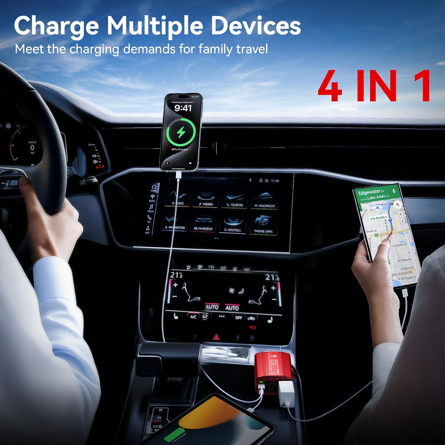 - 【Safe Protection & Reliable】Built-in intelligent chip, the car plug adapter provides multiple protections against short-circuit, overload, overvoltage and overheating. The metal housing is ultra compact and lightweight, it protects well against any drops or impacts that are natural on road trips or spending time outdoors.