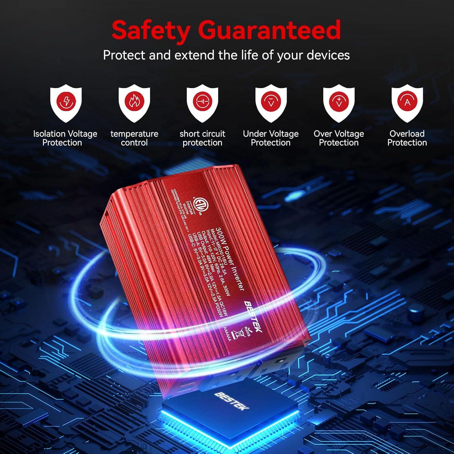 - 【Quiet and High Efficiency】Our power inverter adopts high efficiency circuit design and advanced heat dissipation technology, which can effectively reduce energy consumption and working noise. Ideal for road trips, camping, and mobile working.