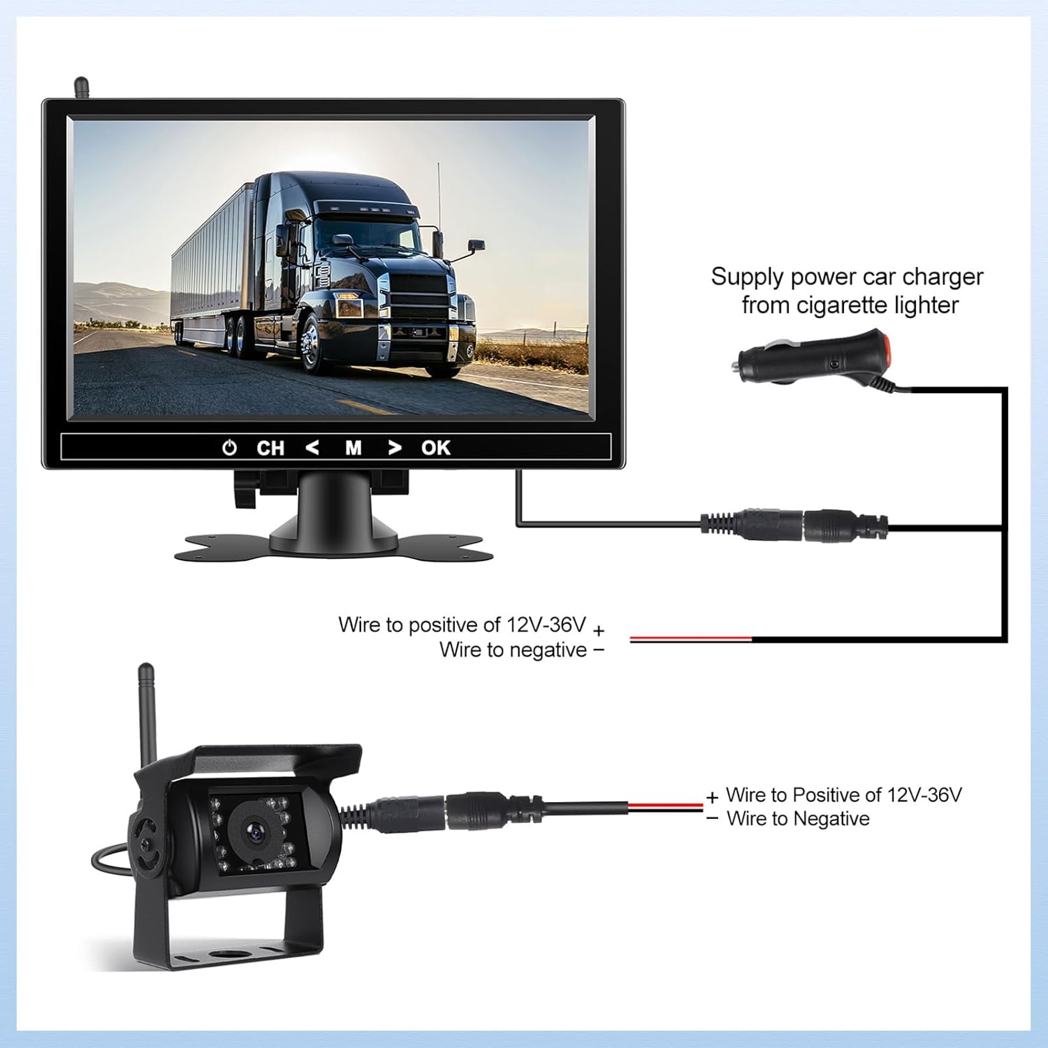 - 【Quick Installation】: Easy to install with no wires between the cameras and monitor. Simply plug in and use it! Get wireless RV camera system and enjoy a hassle-free installation process