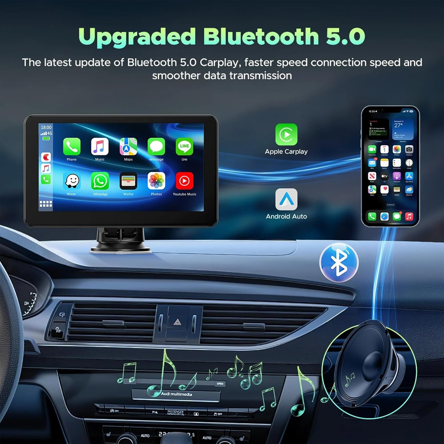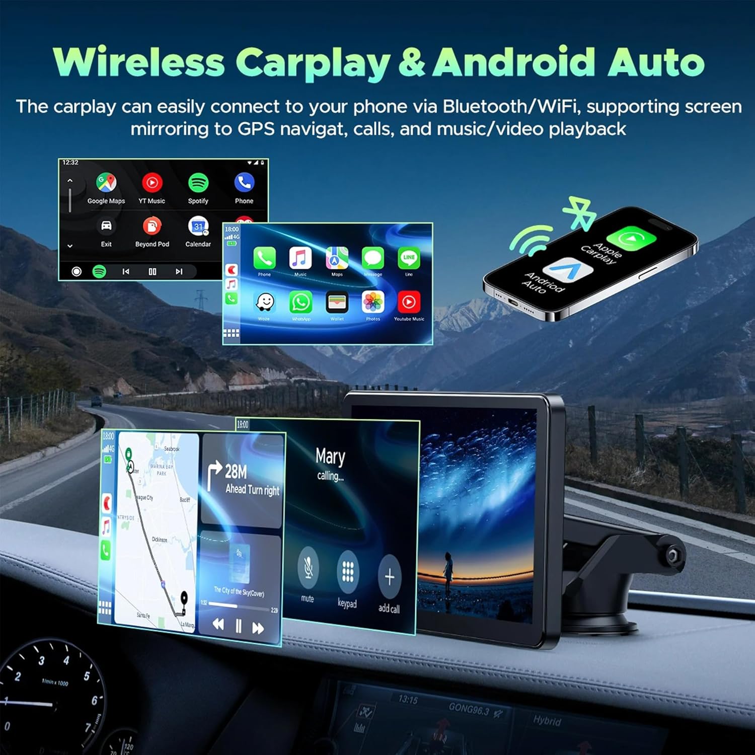 - ă Phone Mirror Link ă: The 7-inch CarPlay screen for cars supports iOS and Android mirroring. Equipped with upgraded WiFi connection and USB wired connection. Easily sync YouTube, TIKTOK videos, videos GPSïŒ Enjoy high-definition large screen video experience. Make your trip enjoyable