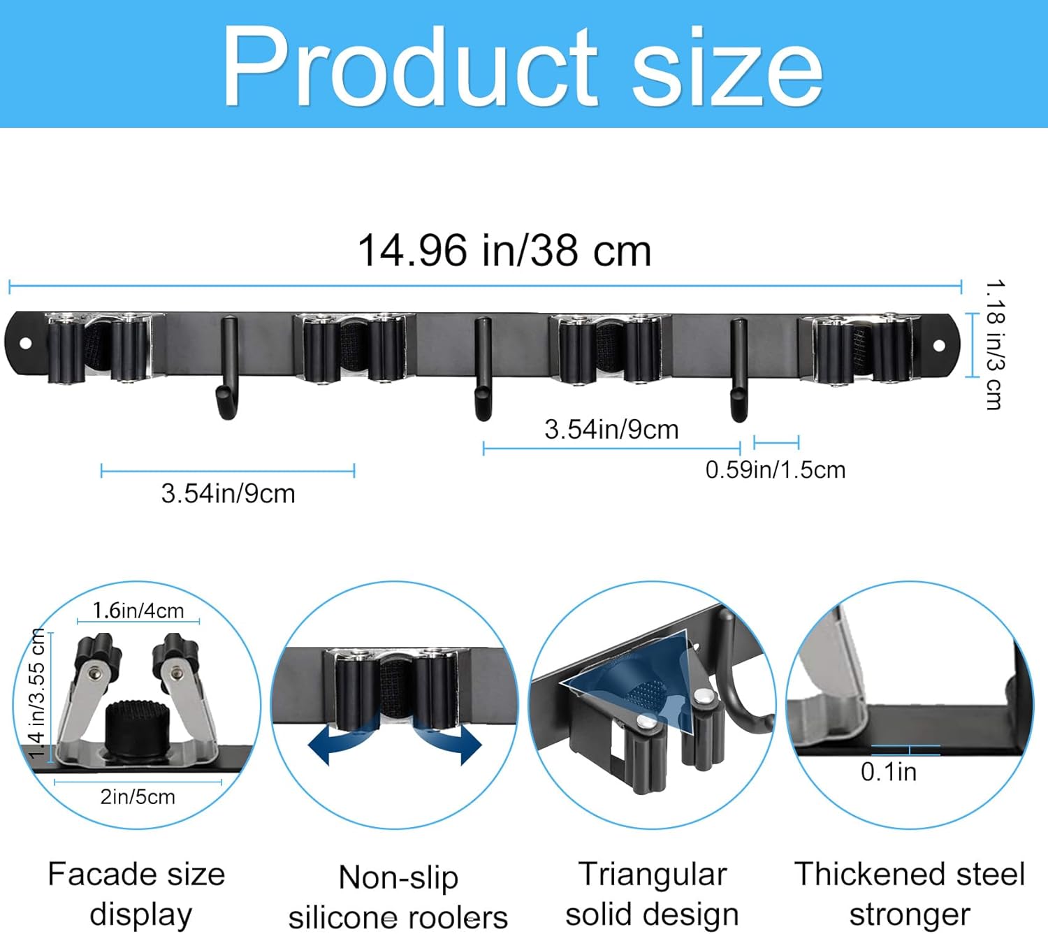 - Space-saving: By organizing your cleaning tools on the wall, the broom hooks wall mounted frees up valuable floor space. Black broom holder makes it a great space-saving option for small homes, apartments, or closets, Broom rack wall mount can help to reduce clutter and create a more organized living space.