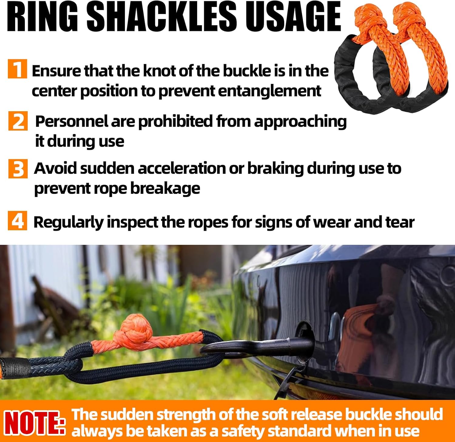 - Trucks TOW STRAP KIT: This towing strap set includes 1 tow strap (Orange), 2pcs ring shackles and 1pcs storage bag.1pcs tote bag