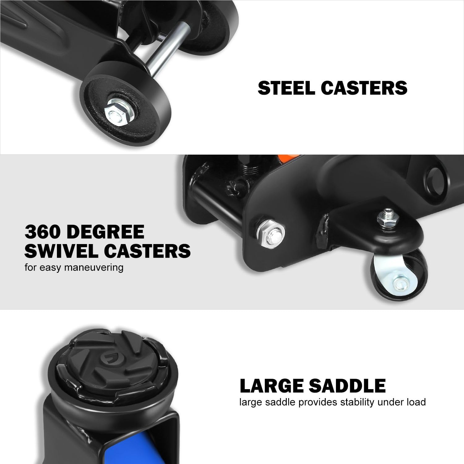 - OVERLOAD PROTECTION & EASY JACK POSITIONING - Built-in dependable safety release valve triggers in the event of an overload to prevent damage or injury. The large saddle provides extra stability and helps protect your vehicle.
