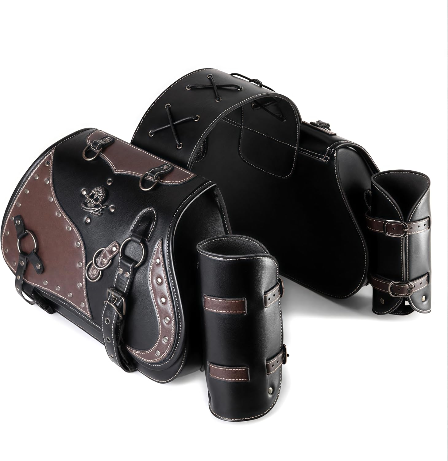 Motorcycle Saddlebags, 30L Leather Waterproof Side Saddle Bags with Cup Holder, Universal Powersports Saddlebags for Harley Davidson Sportster Dyna Softail Honda Shadow Rebel Yamaha Kawasaki Vulcan