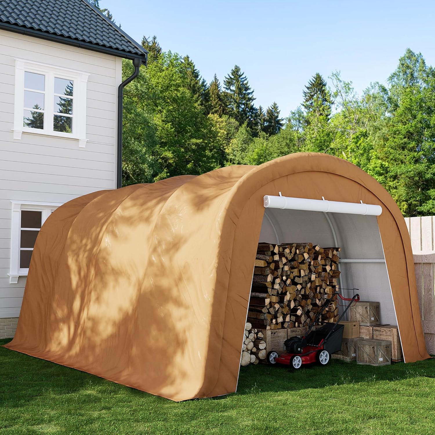 - 2 ROLL-UP DOORS: The outdoor storage shed features two roll-up doors at the front and back, which can be closed or rolled up. It's easy to get in and out of this carport, and it allows better air circulation inside.