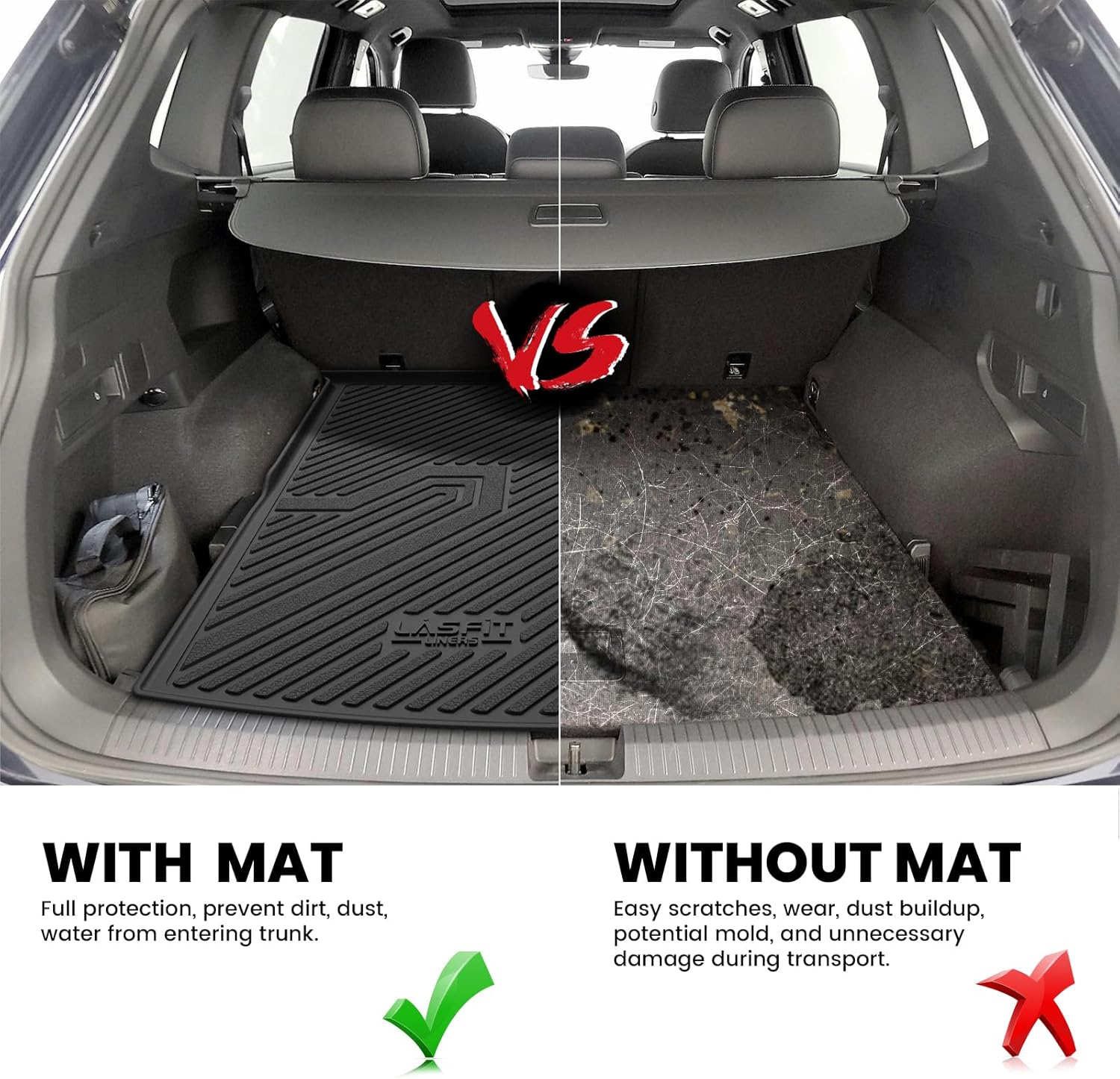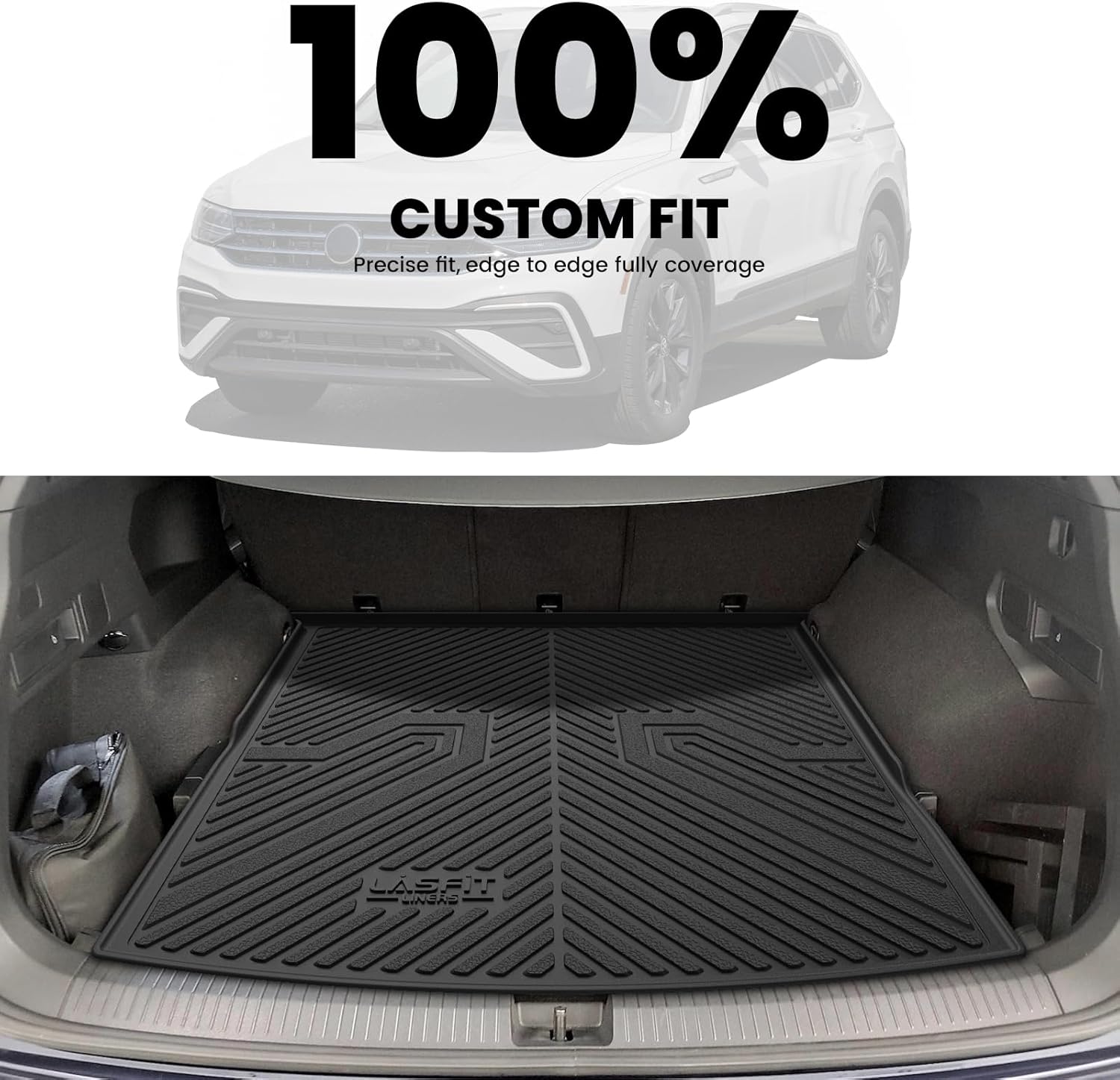 - CUSTOM FIT - This LASFIT Cargo Mat is specifically designed for Volkswagen Tiguan 2018-2024 models. The precise cut ensures no gaps or shifting, providing a seamless and secure fit. No need to worry about compatibility issues or misfits—install it effortlessly and enjoy the perfect coverage for your trunk space.