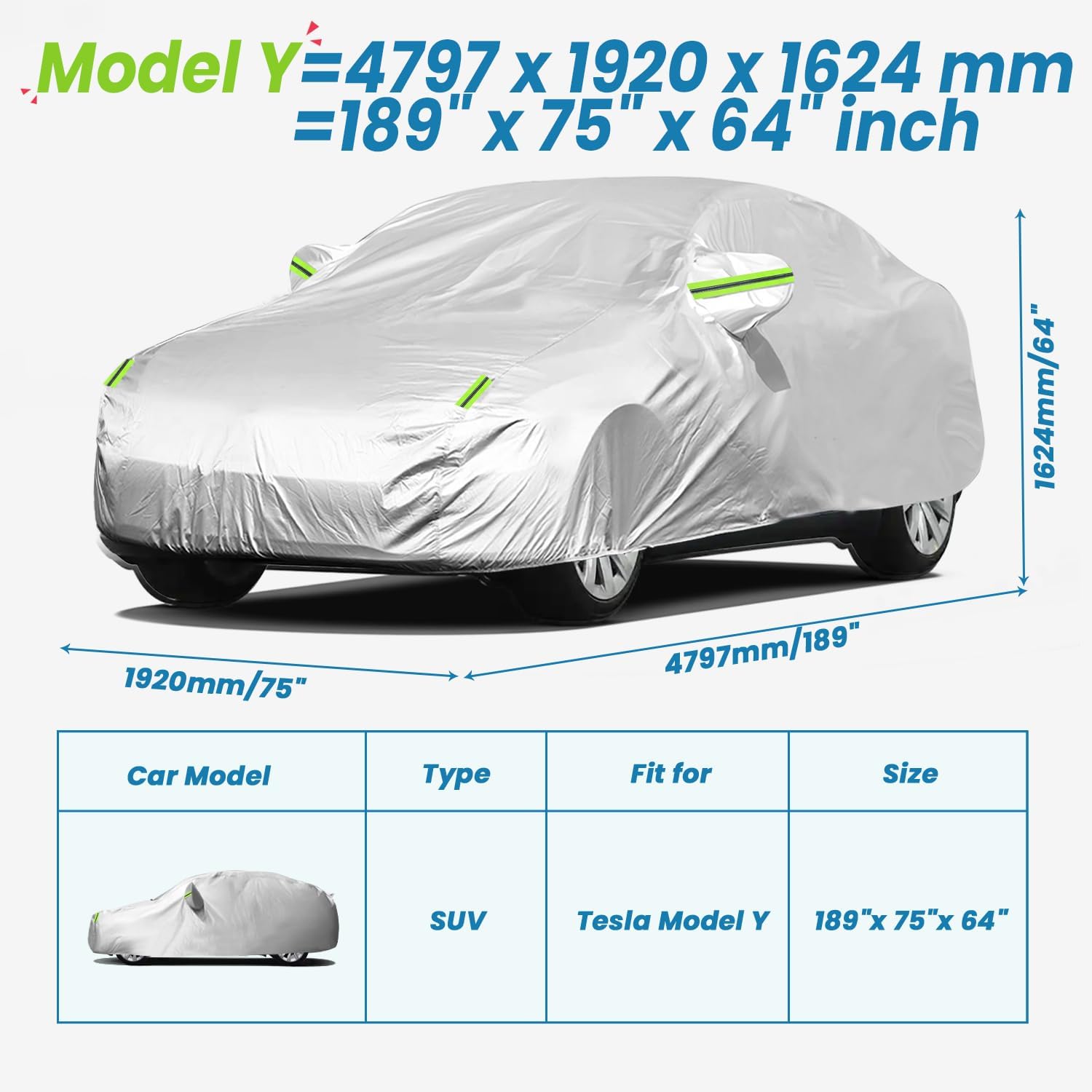 - Precision Custom Fit for Tesla Model Y (2020-2024): Exclusive 3D laser-cut tailoring ensures seamless integration with your Tesla Model Yβs aerodynamic contours (size: 189"L x 75"W x 64"H), providing full coverage. Reinforced stretchable seams and a weather-resistant elastic hem adapt to temperature changes, maintaining a secure, gap-free fit even in high winds.