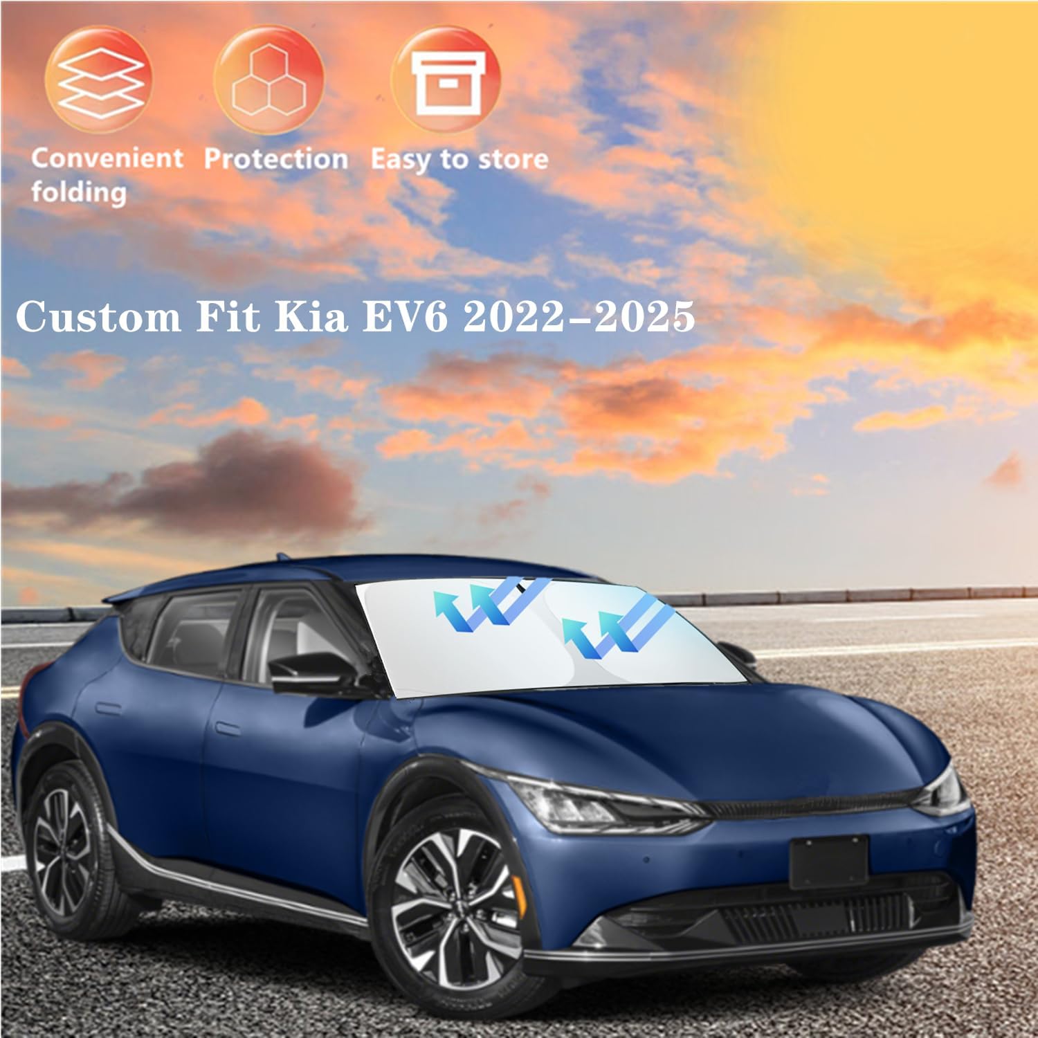 Windshield Sun Shade for Kia EV6 2022 2023 2024 2025 Custom Fit Foldable Front Window Sunshade Sun Visor Protector Block UV Rays Keep Your Car Cooler