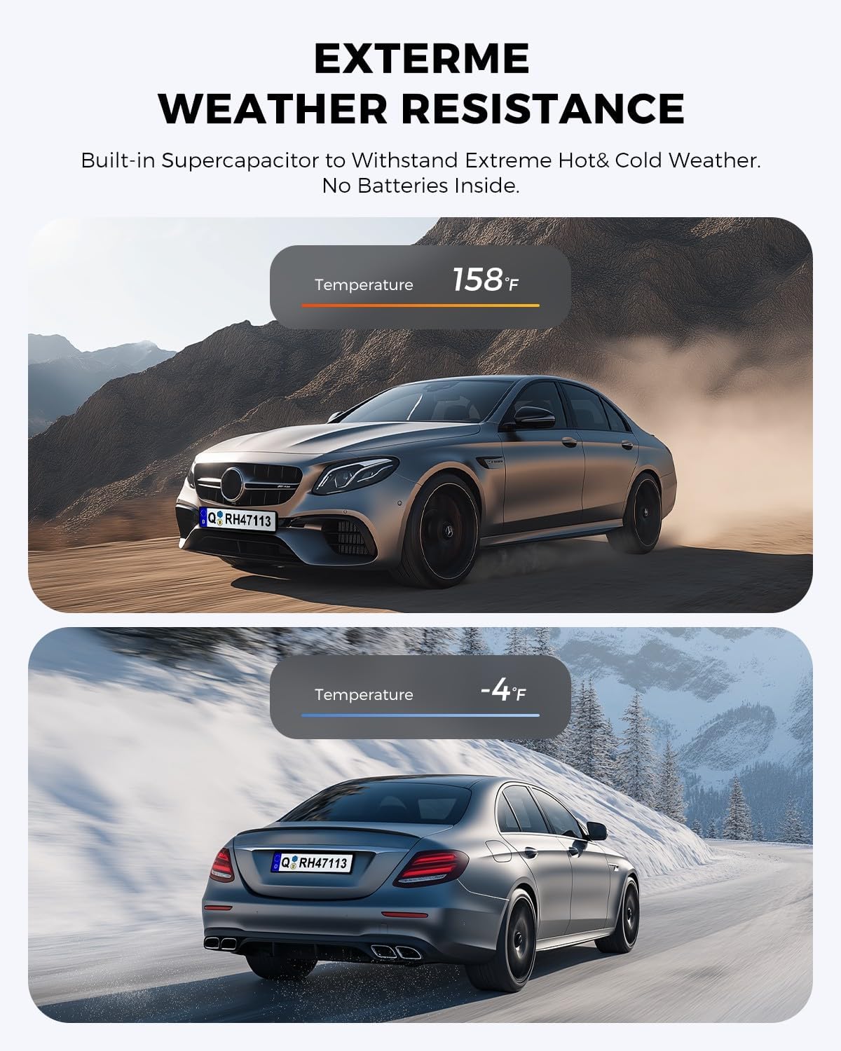 - ă24/7 PROTECTION & LOOP RECORDINGăFeatures G-sensor collision lock, loop recording (auto-overwrites old files), and parking mode with time-lapse recording (hardwiring kit required ASIN: B0DPQSR7MH). Never miss an incident, even when parked.