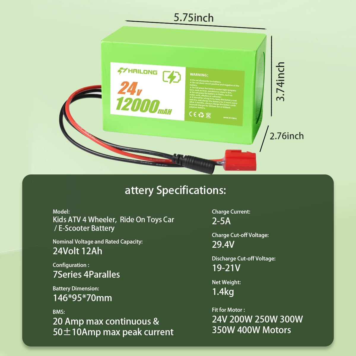 - ​**⚡️ Universal Compatibility** Perfect replacement for ​24V ride-on toys, electric UTVs, and kids ATVs. Compatible with systems using ​12FM7 battery 24V 12Ah 20hr specifications