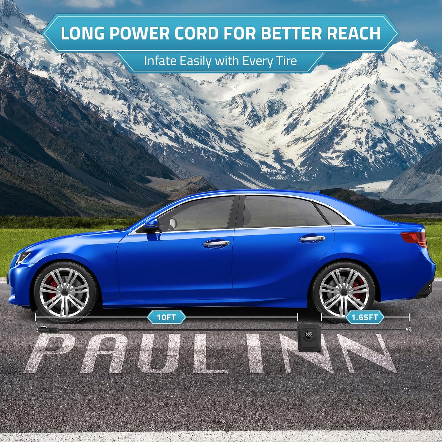 PAULINN Tire Inflator Air Compressor 12V DC Portable Air Pump 150 PSI for Car Tires, Auto Tire Pump with Digital Pressure Gauge, Auto Shutoff & LED Light for Cars, Motorcycles, Bikes & Balls, Black