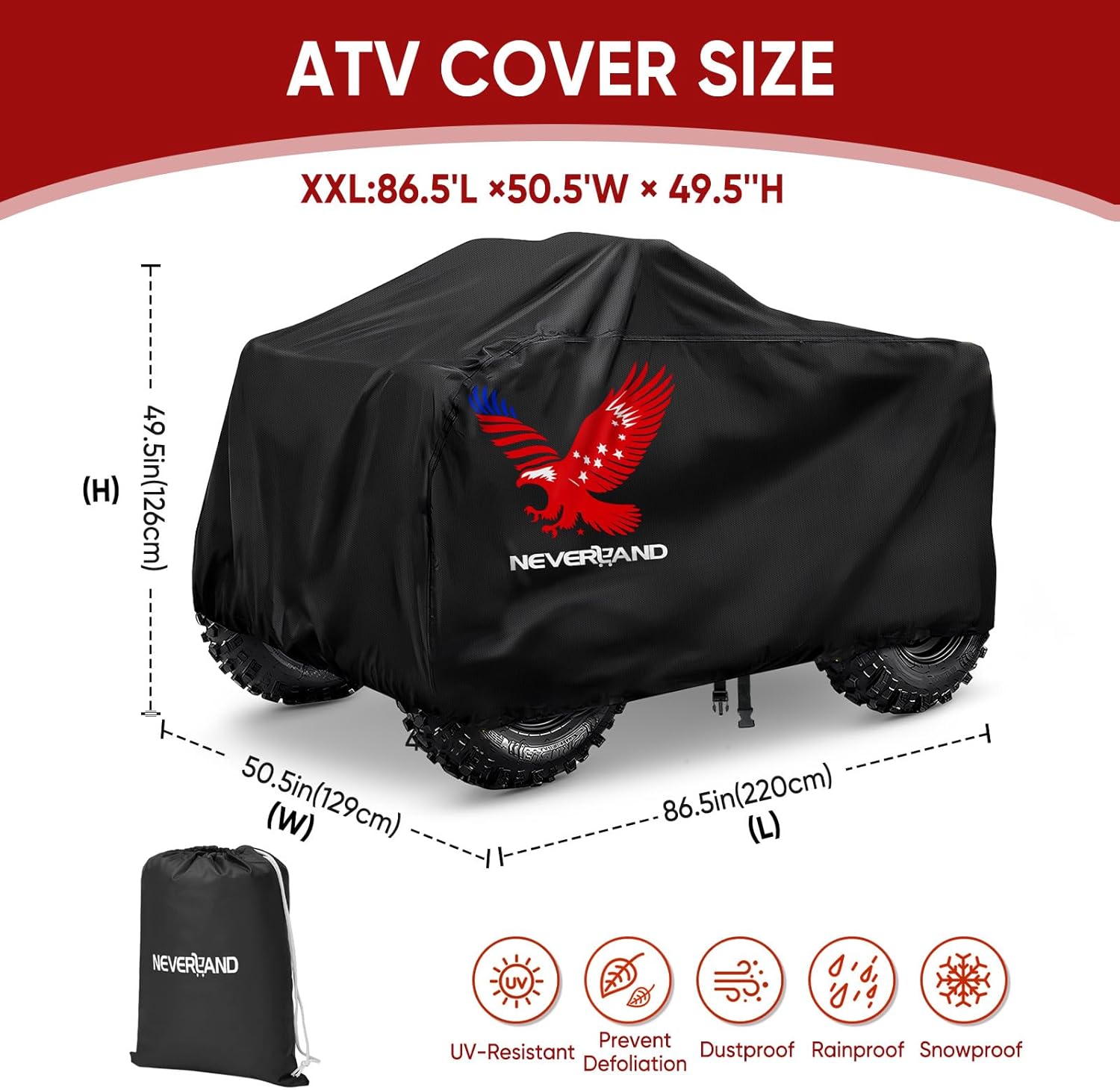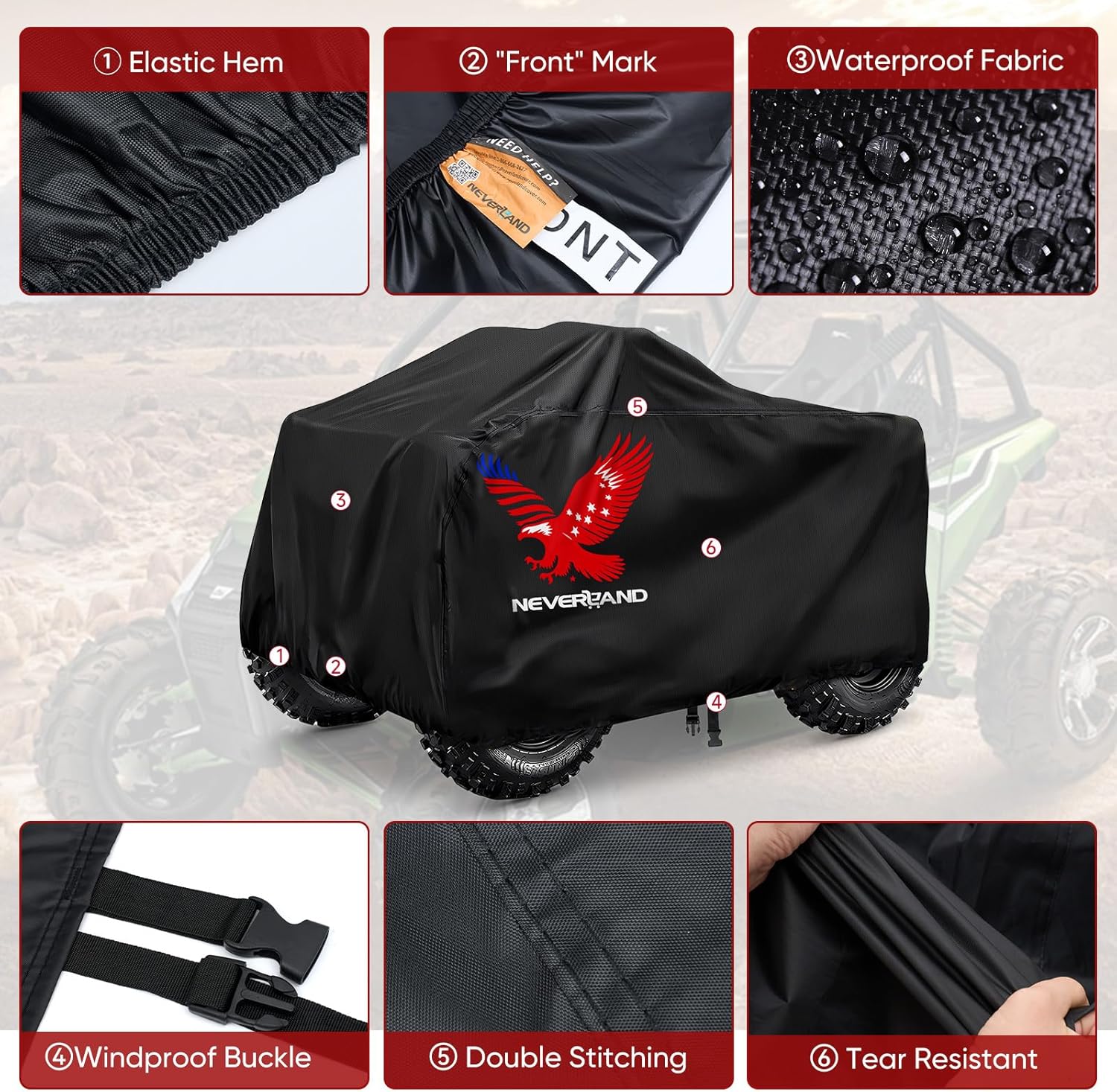 - High-Visibility Safety ATV Cover Design: Unique eagle print enhances nighttime visibility and safety for your quad cover, while elastic hems and windproof buckle ensure a secure fit that stays put even in strong winds