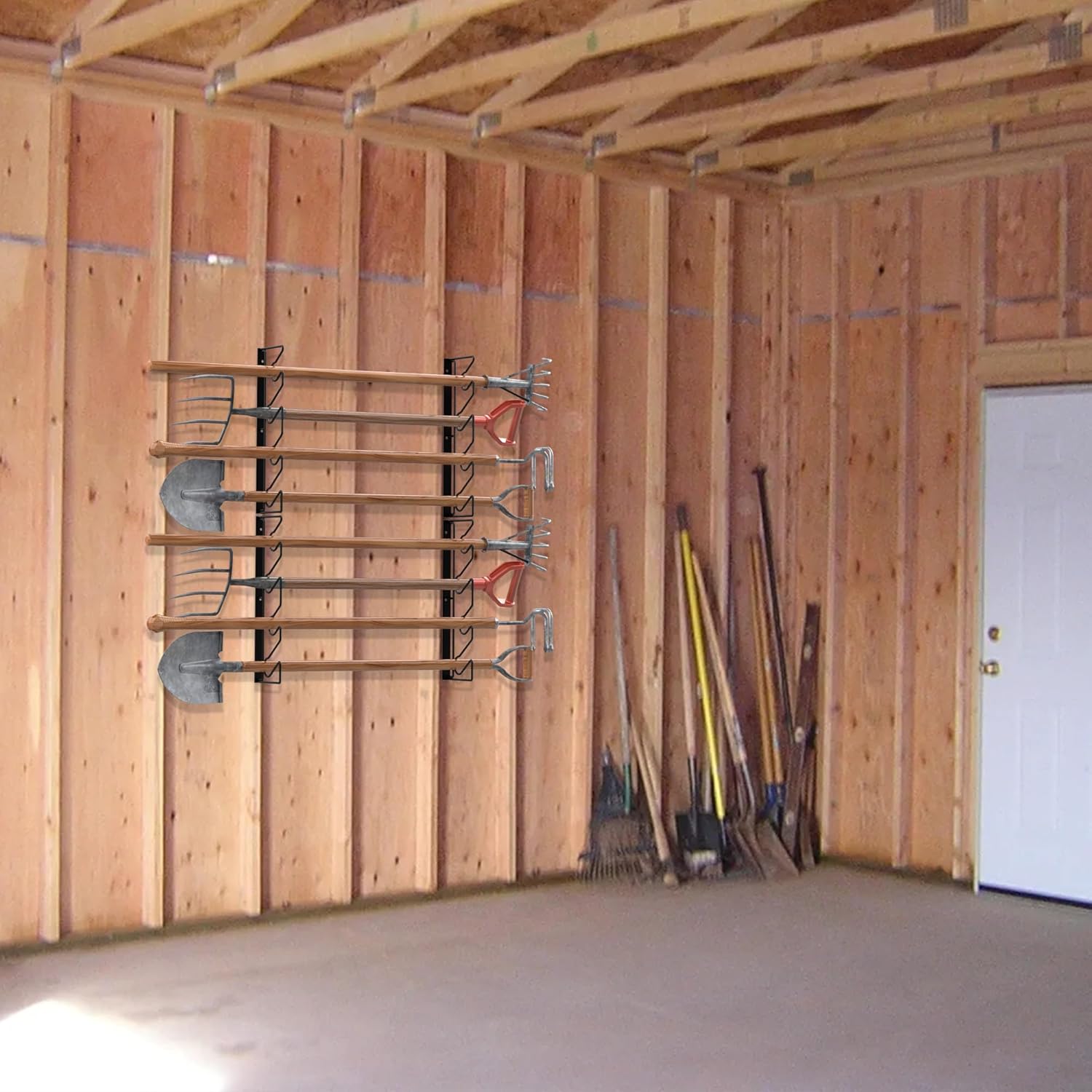 - Space Saving: Say goodbye to ground mess, perfect for getting shovels and other tools out of the corner, the vertical hanging design of the wall mount rack helps save valuable floor space, keeping your garden area neat and tidy