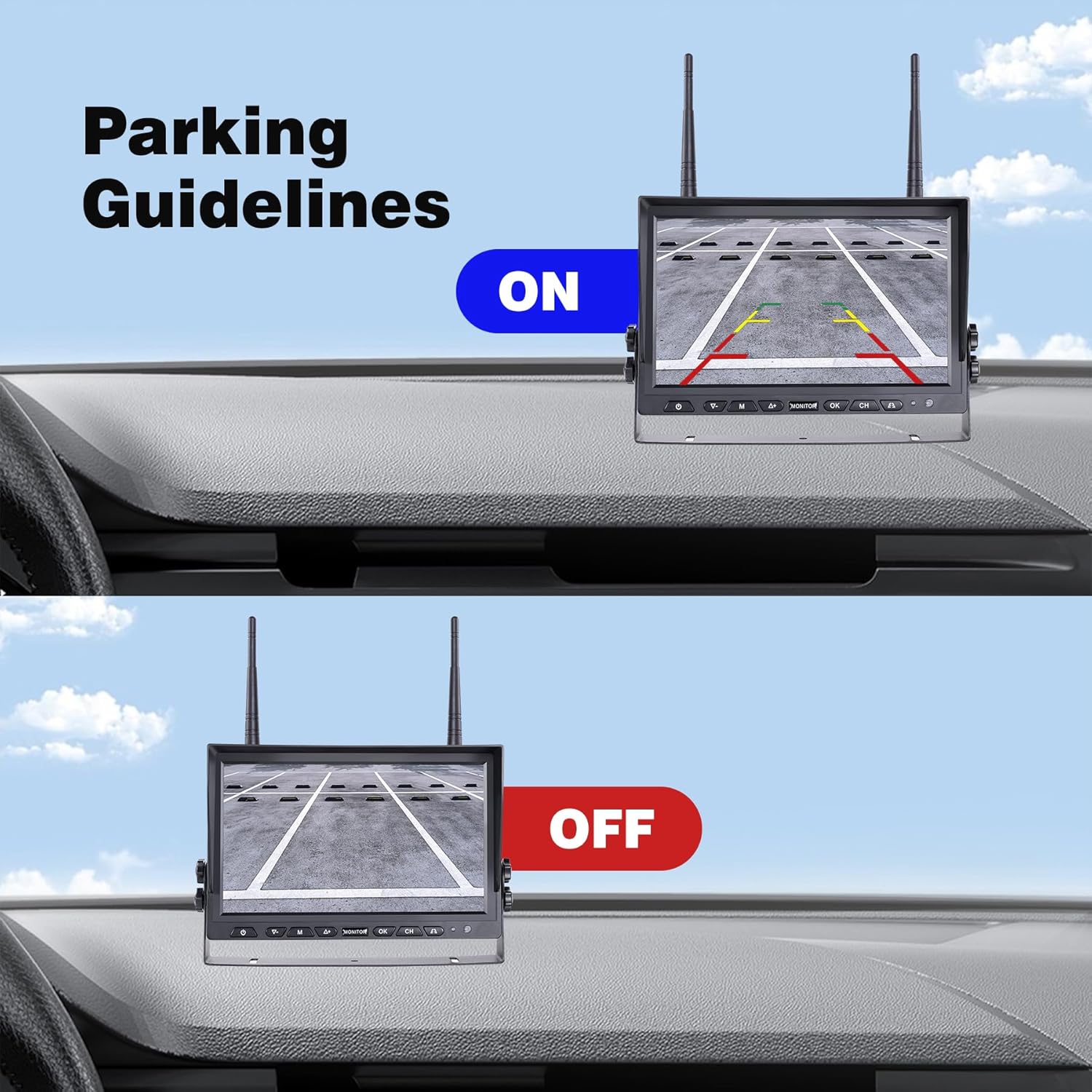 - 【Truly Wireless Setup】 Enjoy cable-free video transmission between cameras and monitor! Simply power: ① Monitor via cigarette lighter or fuse box connection ② Cameras to tail lights (constant monitoring) or backup lights (reverse-only mode). No messy video cables to route - just clean, straightforward installation that works instantly. Perfect for DIY users wanting professional-grade monitoring.