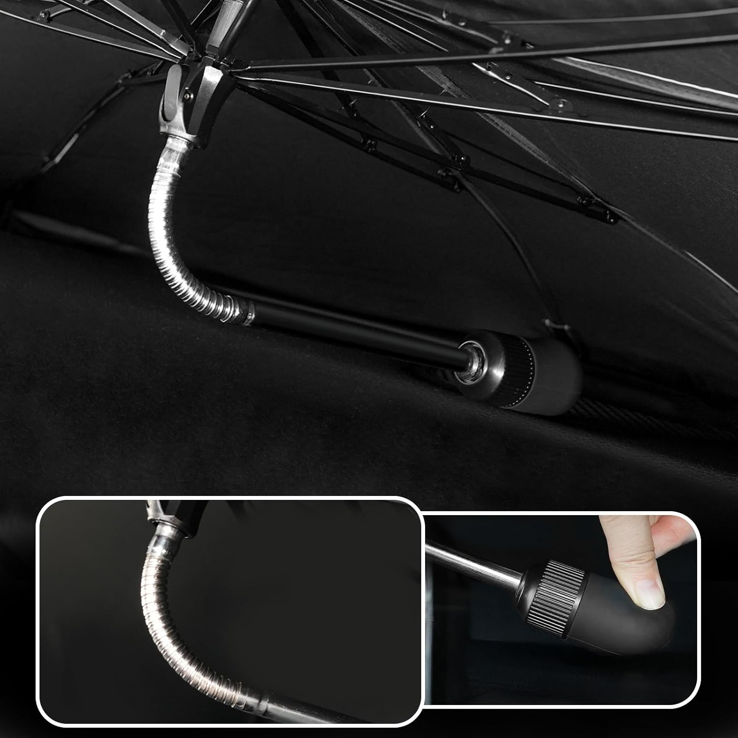 - DURABILITY: Built with 10 robust umbrella ribs, this front windshield umbrella sunshade is extremely sturdy. The bendable tubes can be flexed 360Β°, and the silicone tips protect your car's interior from scratches and damage, ensuring long-lasting use and peace of mind.