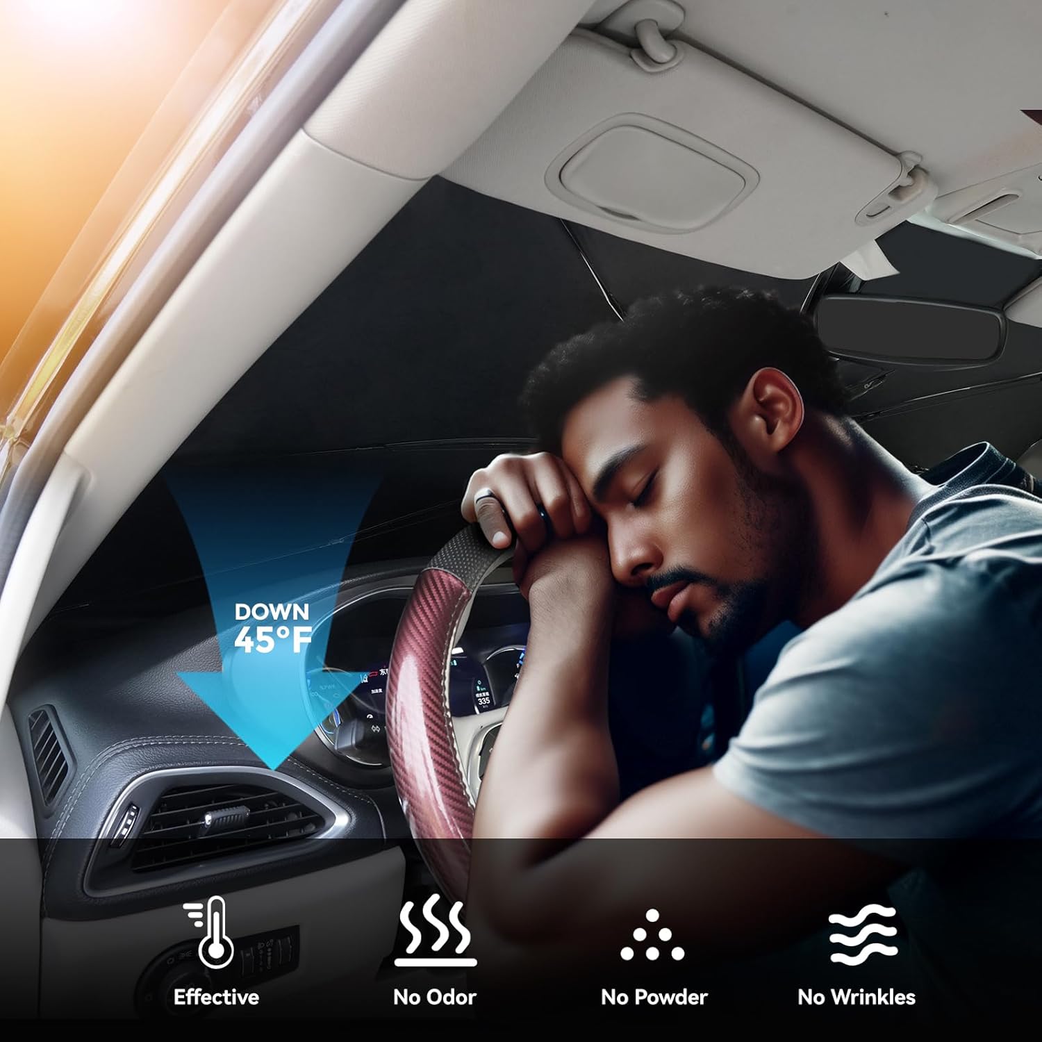 - PROTECTION: Beat the midday heat and glare! Engineered for maximum protection, this windshield sunshade blocks strong sunlight and UV rays, safeguarding your car's interior and keeping you protected. Step into a cooler, shaded car every time, enjoy every comfortable journey.