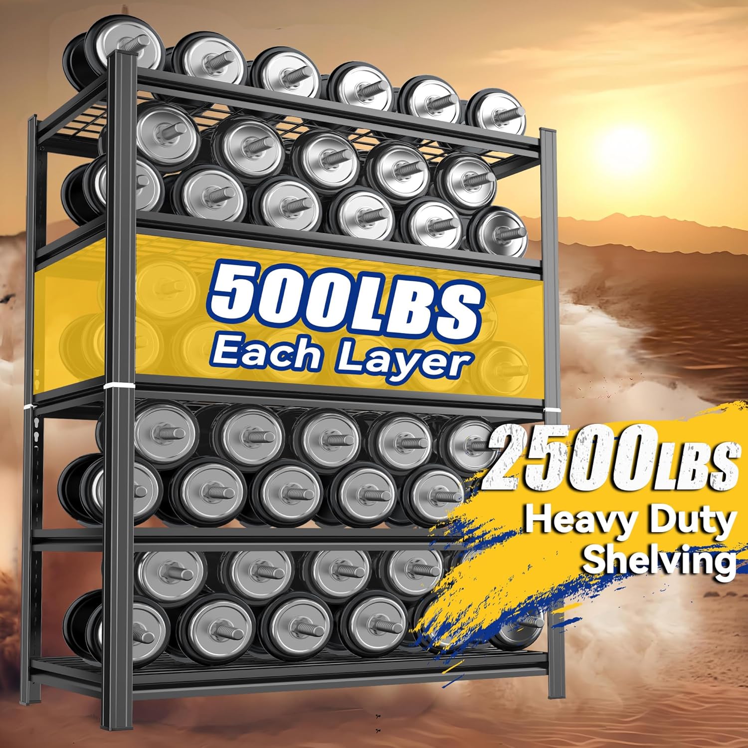 - 【2500 lbs Load Capacity】 Constructed with robust steel and double metal legs, this shelving unit supports up to 2500 lbs in total (with 500 lbs per shelf), ensuring reliable storage for heavy items. Unlike traditional particle board, this heavy-duty design provides unmatched durability and stability for even the bulkiest goods