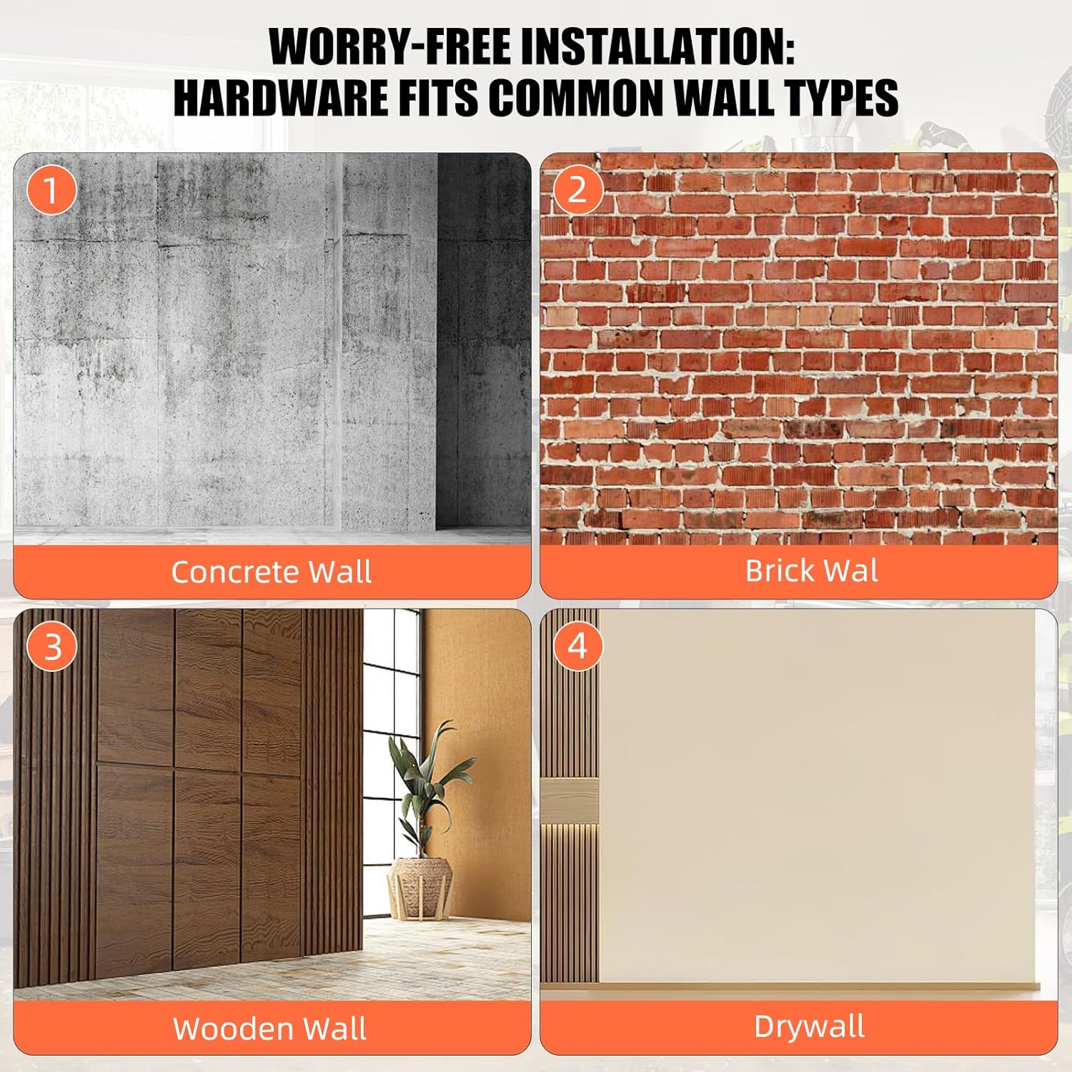 - SET CONTENTS AND USAGE: The set includes 6 Medium orange square ladder hooks, measuring 5.12x5.12x2.44 inches, ideal for hanging bulky and heavy items like ladders, bicycles, etc. The garage wall organizer black anti-rust coating enhances visibility in low-light environments