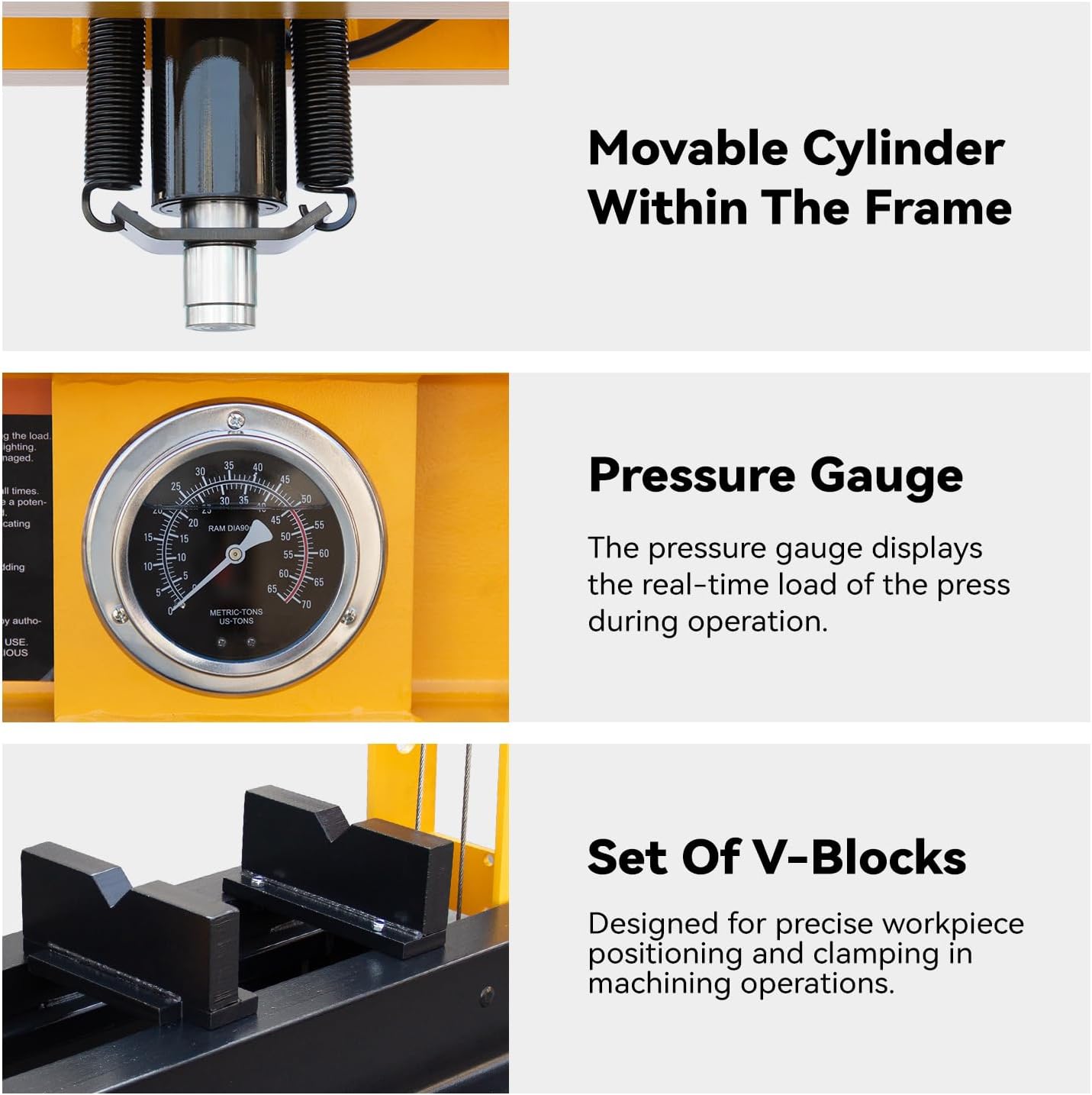 - Pressure gauge: Display the real-time load of the press during operation