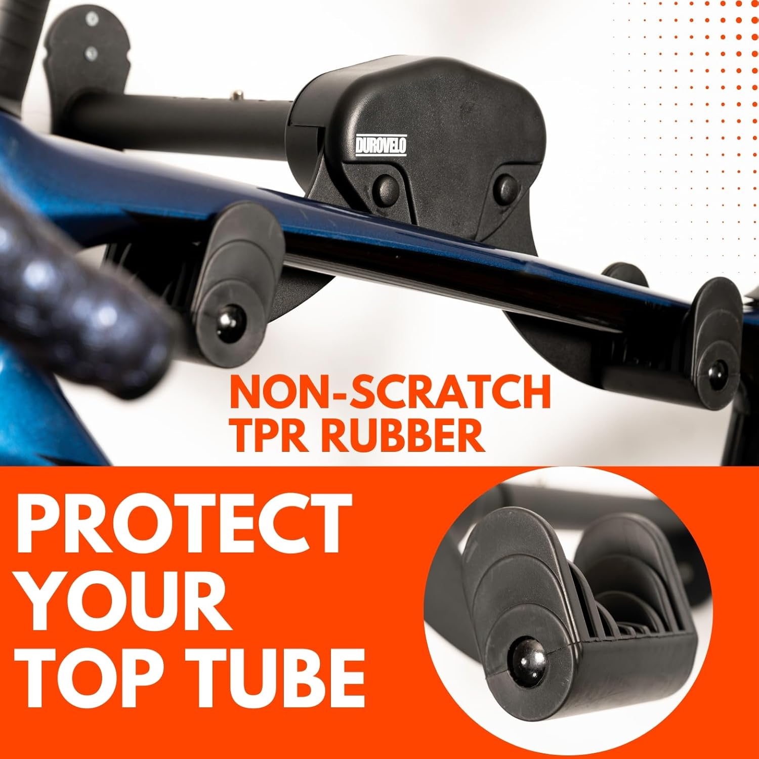 - PROTECT YOUR BIKE FRAME: Super soft NonScratch TPR rubber cradles safeguard aluminum, carbon, and steel frames from scratches. Includes an elastic rope to stabilize the front wheel, preventing wall scuffs and movement. Perfect for preserving your bikeβs finish.