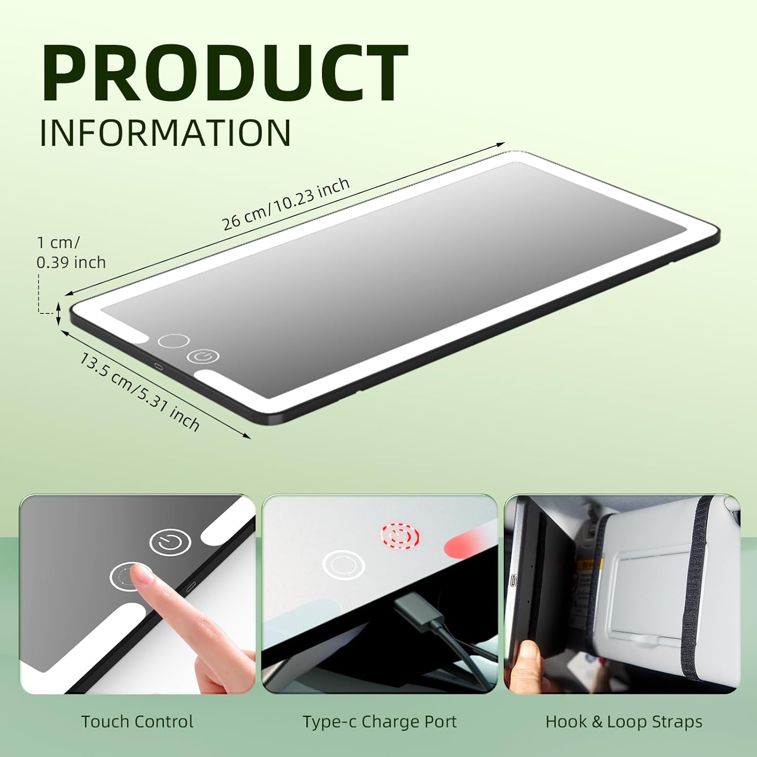 - ăClear visibilityă Our makeup mirror for car visor are large, high-definition mirrors with a wide field of view. This makes it easier to groom your eyebrows, apply eyeliner, or apply full facial makeup with precision and clarity. The mirror's distortion-free surface ensures you see a true reflection of your face, helping you achieve perfect makeup results every time.