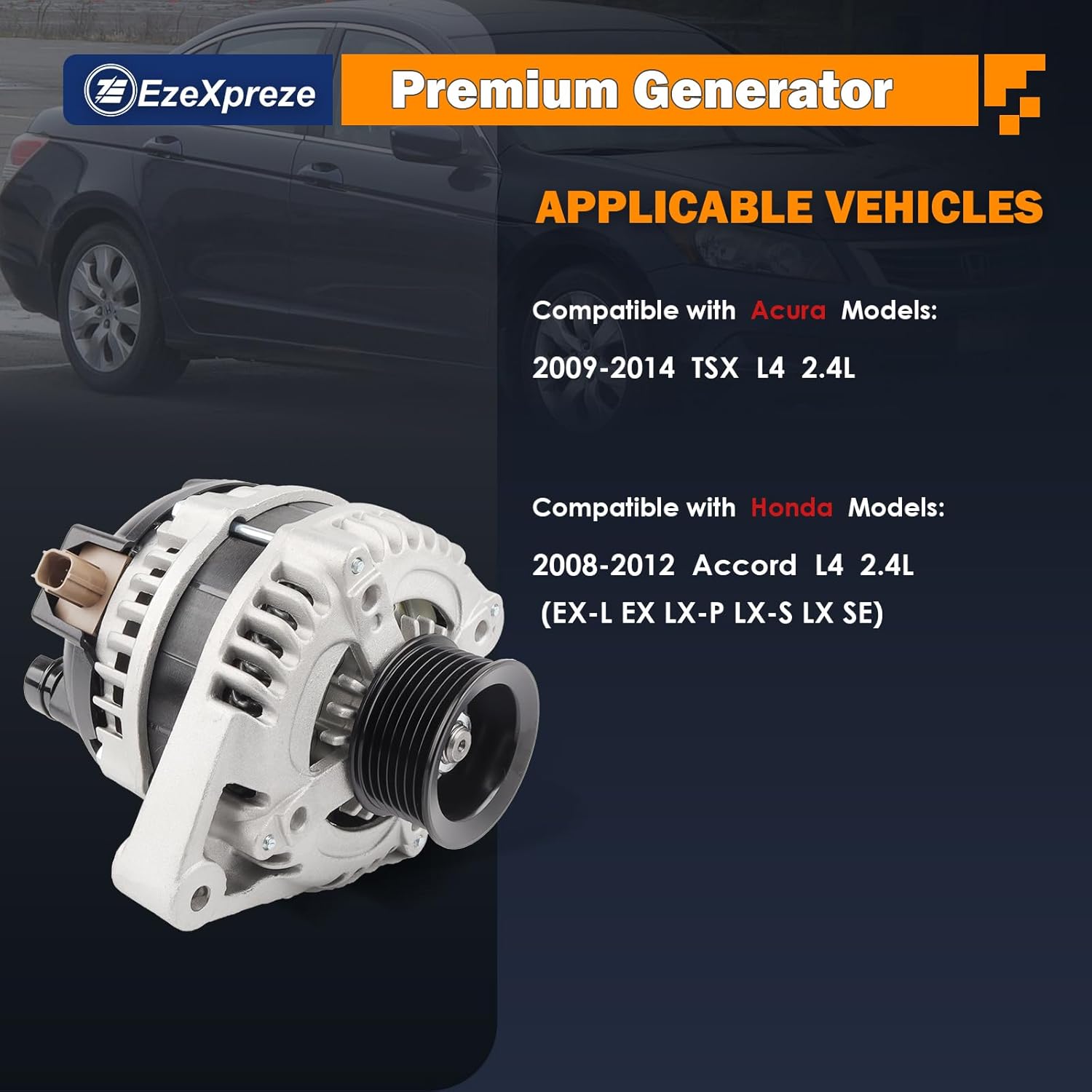 Ezexpreze 11390 Alternator Replacement for 2.4L Honda Accord 2008 2009 2010 2011 2012,Acur.a TSX 2009 2010 2011 2012 2013 2014 130A,12V,CW,7-Groove Pulley, OE#11390,1042105890,12870